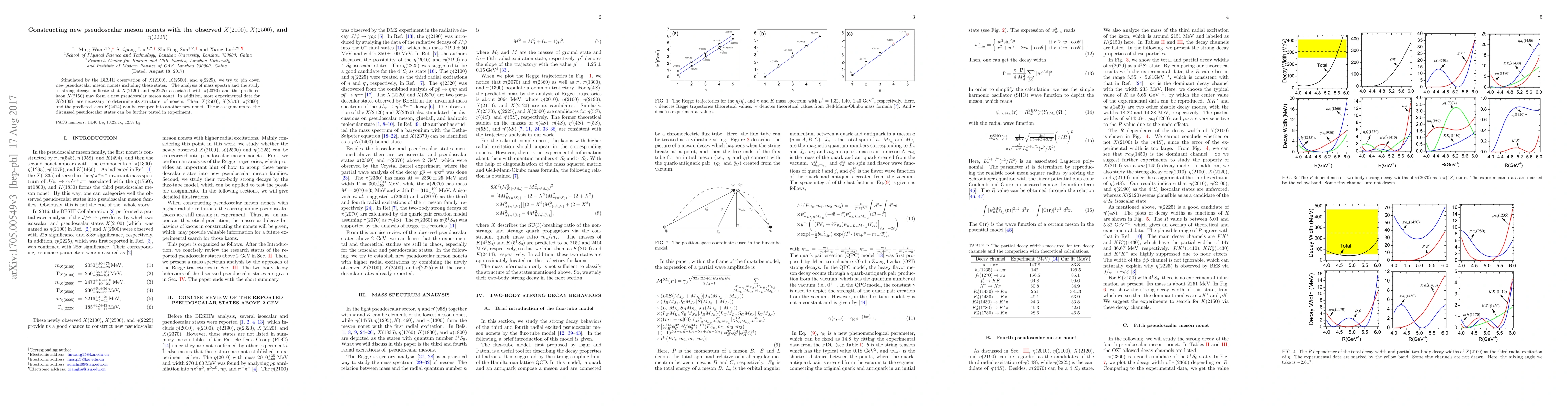 Stimulated by the BESIII observation of $X(2100)$, $X(2500)$, and $\eta(2225)$, we try to pin down new pseudoscalar meson nonets including these states. The analysis of mass spectra and the study of strong decays indicate that $X(2120)$ and $\eta(2225)$ associated with $\pi(2070)$ and the predicted kaon $K(2150)$ may form a new pseudoscalar meson nonet. In addition, more experimental data for $X(2100)$ are necessary to determine its structure of nonets. Then, $X(2500)$, $X(2370)$, $\pi(2360)$, and the predicted kaon $K(2414)$ can be grouped into another new nonet. These assignments to the discussed pseudoscalar states can be further tested in experiment.