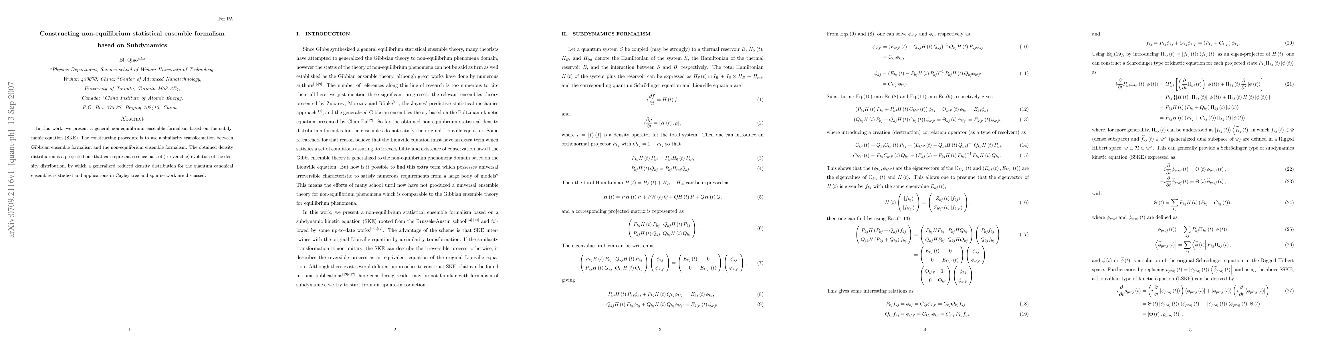 In this work, we present a general non-equilibrium ensemble formalism based on the subdynamic equation (SKE). The constructing procedure is to use a similarity transformation between Gibbsian ensemble formalism and the non-equilibrium ensemble formalism. The obtained density distribution is a projected one that can represent essence part of (irreversible) evolution of the density distribution, by which a generalized reduced density distribution for the quantum canonical ensembles is studied and applications in Cayley tree and spin network are discussed.
