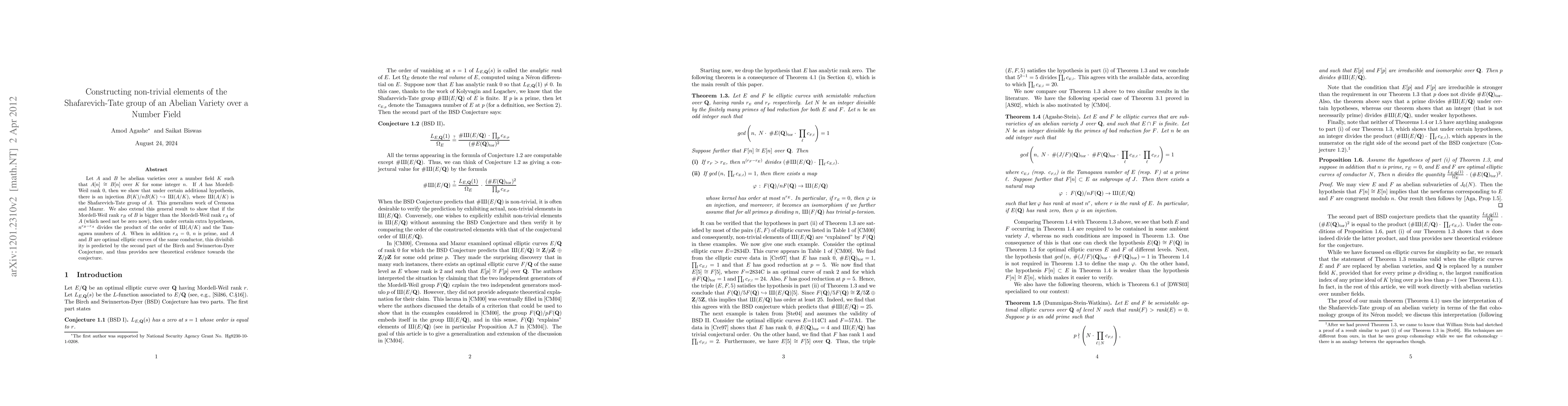This paper generalizes the theory of constructing non-trivial elements in the Shafarevich-Tate group of an elliptic curve to abelian varieties over number fields, providing conditions for such constructions and offering new theoretical support for the Birch and Swinnerton-Dyer conjecture.