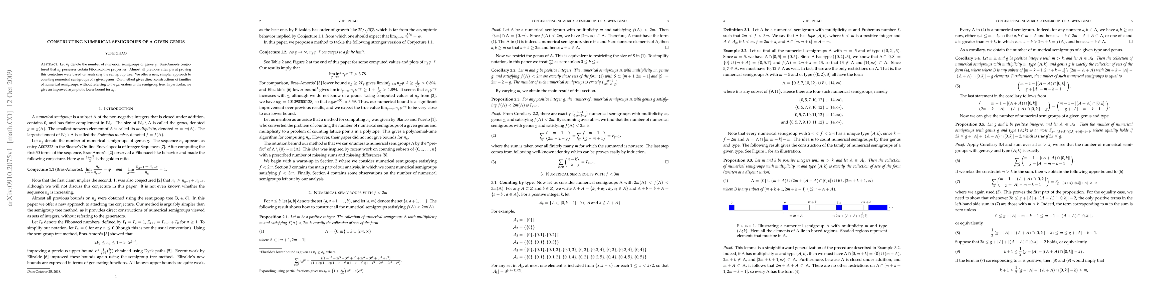 This paper presents a novel method for constructing numerical semigroups of a given genus, offering a simpler approach than previous analyses based on the semigroup tree. The authors provide direct constructions and improve the asymptotic lower bound for the number of such semigroups, supporting Bras-Amoros' conjecture on their Fibonacci-like properties.