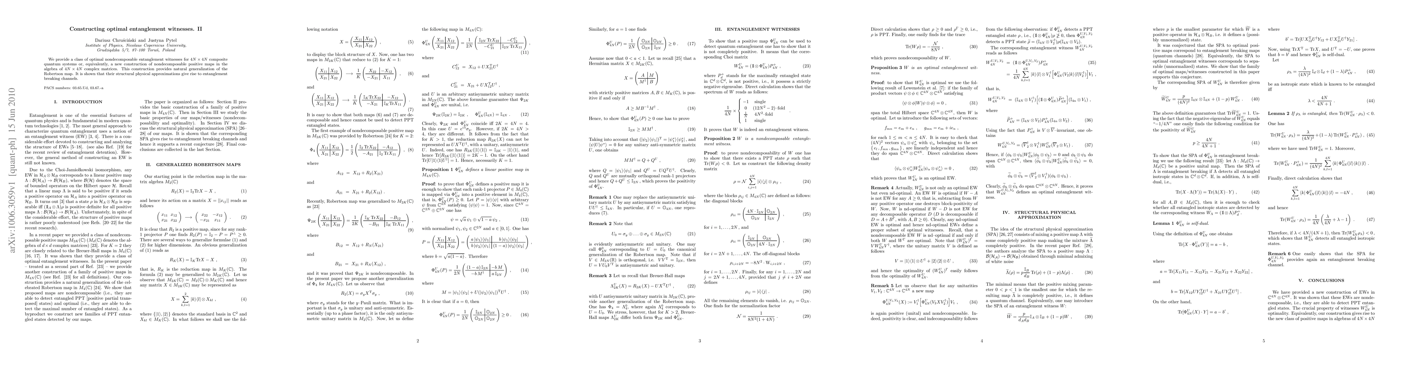 We provide a class of optimal nondecomposable entanglement witnesses for 4N x 4N composite quantum systems or, equivalently, a new construction of nondecomposable positive maps in the algebra of 4N x 4N complex matrices. This construction provides natural generalization of the Robertson map. It is shown that their structural physical approximations give rise to entanglement breaking channels.