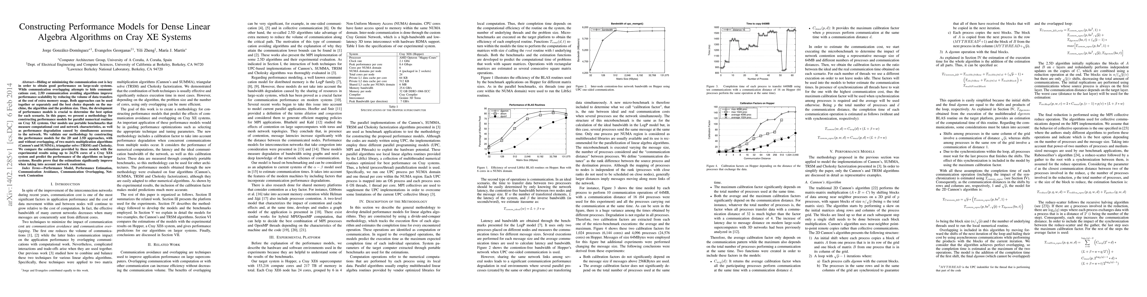 Hiding or minimizing the communication cost is key in order to obtain good performance on large-scale systems. While communication overlapping attempts to hide communications cost, 2.5D communication avoiding algorithms improve performance scalability by reducing the volume of data transfers at the cost of extra memory usage. Both approaches can be used together or separately and the best choice depends on the machine, the algorithm and the problem size. Thus, the development of performance models is crucial to determine the best option for each scenario. In this paper, we present a methodology for constructing performance models for parallel numerical routines on Cray XE systems. Our models use portable benchmarks that measure computational cost and network characteristics, as well as performance degradation caused by simultaneous accesses to the network. We validate our methodology by constructing the performance models for the 2D and 2.5D approaches, with and without overlapping, of two matrix multiplication algorithms (Cannon's and SUMMA), triangular solve (TRSM) and Cholesky. We compare the estimations provided by these models with the experimental results using up to 24,576 cores of a Cray XE6 system and predict the performance of the algorithms on larger systems. Results prove that the estimations significantly improve when taking into account network contention.