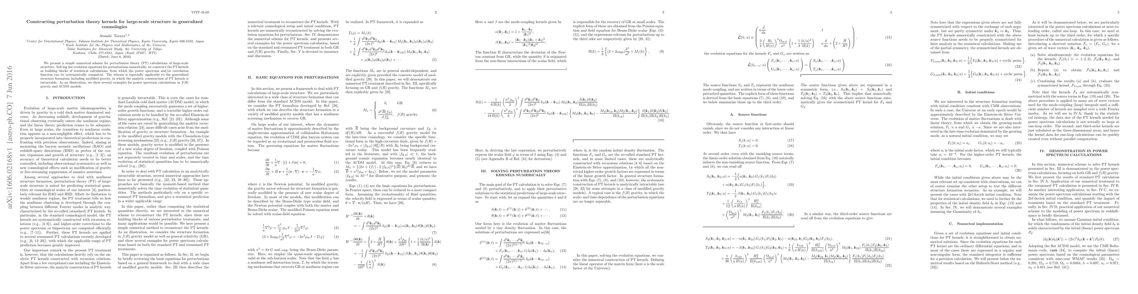 We present a simple numerical scheme for perturbation theory (PT) calculations of large-scale structure. Solving the evolution equations for perturbations numerically, we construct the PT kernels as building blocks of statistical calculations, from which the power spectrum and/or correlation function can be systematically computed. The scheme is especially applicable to the generalized structure formation including modified gravity, in which the analytic construction of PT kernels is intractable. As an illustration, we show several examples for power spectrum calculations in $f(R)$ gravity and $\Lambda$CDM models.