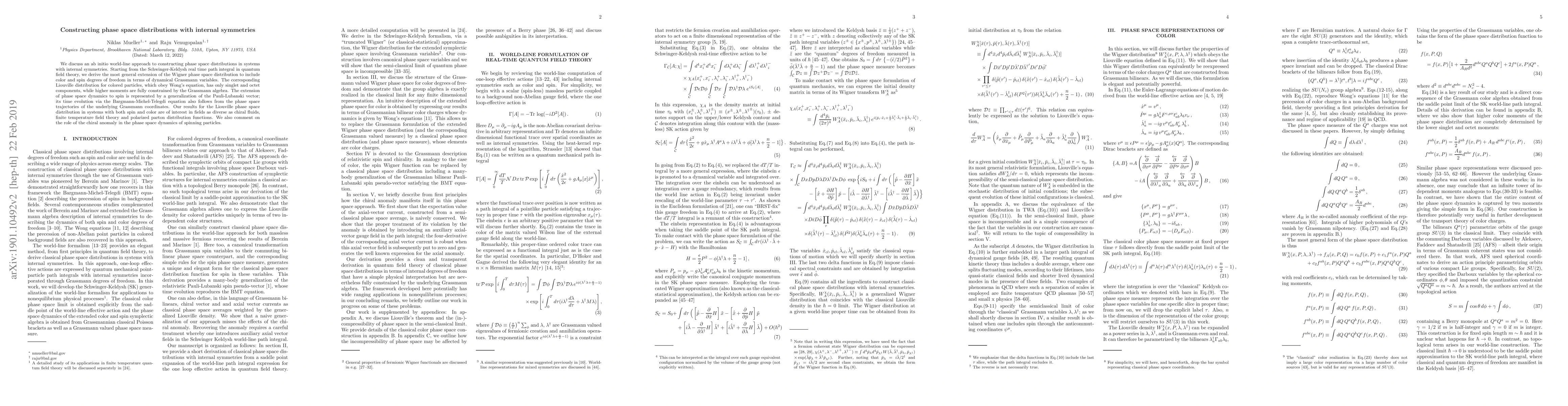 We discuss an ab initio world-line approach to constructing phase space distributions in systems with internal symmetries. Starting from the Schwinger-Keldysh real time path integral in quantum field theory, we derive the most general extension of the Wigner phase space distribution to include color and spin degrees of freedom in terms of dynamical Grassmann variables. The corresponding Liouville distribution for colored particles, which obey Wong's equation, has only singlet and octet components, while higher moments are fully constrained by the Grassmann algebra. The extension of phase space dynamics to spin is represented by a generalization of the Pauli-Lubanski vector; its time evolution via the Bargmann-Michel-Telegdi equation also follows from the phase space trajectories of the underlying Grassmann coordinates. Our results for the Liouville phase space distribution in systems with both spin and color are of interest in fields as diverse as chiral fluids, finite temperature field theory and polarized parton distribution functions. We also comment on the role of the chiral anomaly in the phase space dynamics of spinning particles.