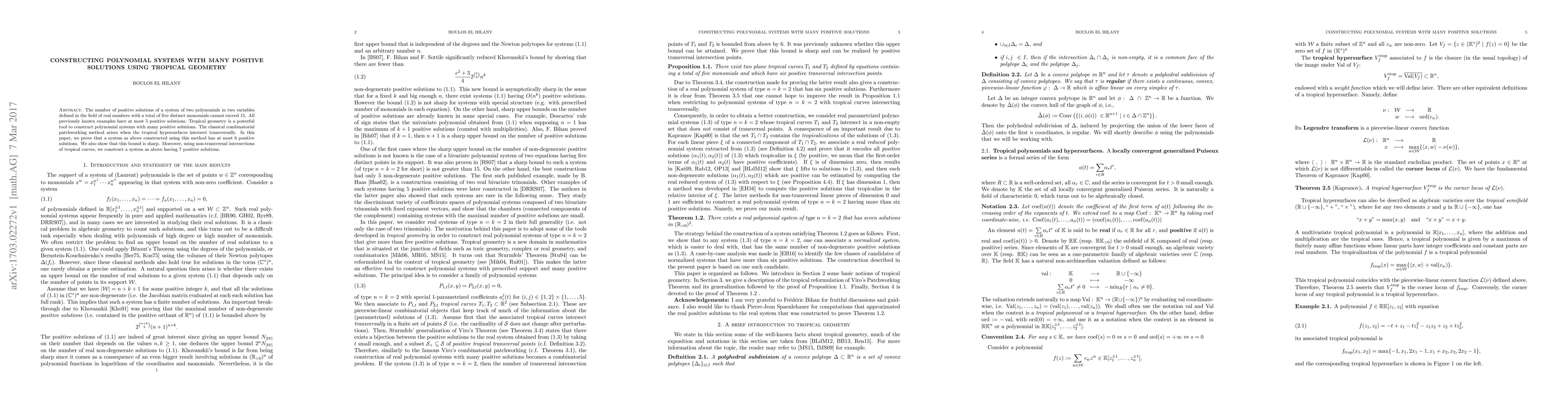 The paper introduces a rigorous proof and construction method for polynomial systems with a specified number of positive solutions using tropical geometry, specifically addressing the case of five distinct monomials in two variables.