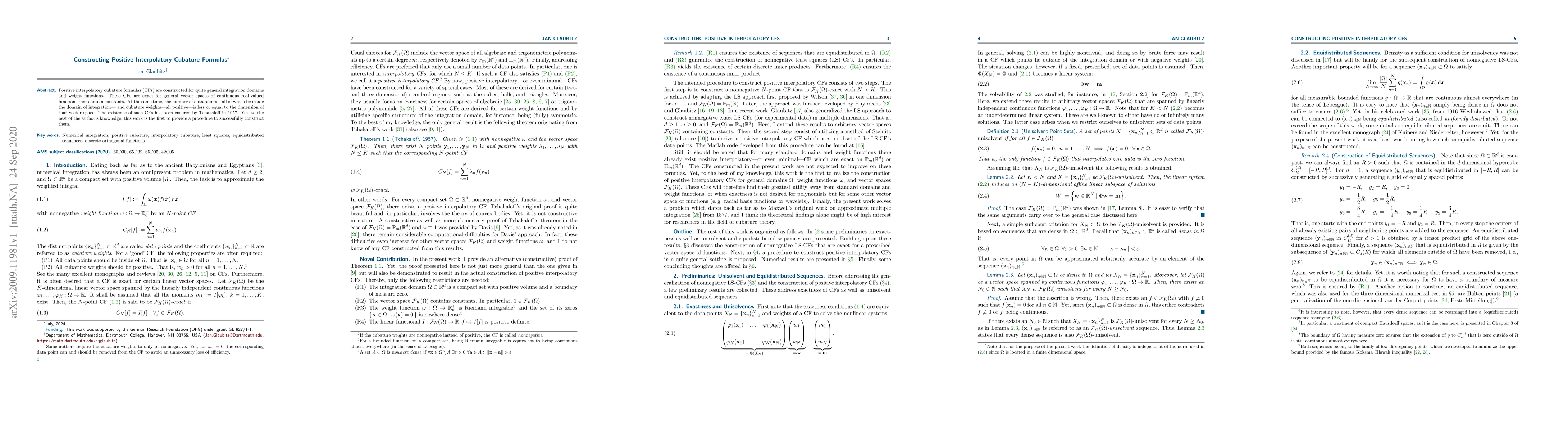 Positive interpolatory cubature formulas (CFs) are constructed for quite general integration domains and weight functions. These CFs are exact for general vector spaces of continuous real-valued functions that contain constants. At the same time, the number of data points -- all of which lie inside the domain of integration -- and cubature weights -- all positive -- is less or equal to the dimension of that vector space. The existence of such CFs has been ensured by Tchakaloff in 1957. Yet, to the best of the author's knowledge, this work is the first to provide a procedure to successfully construct them.