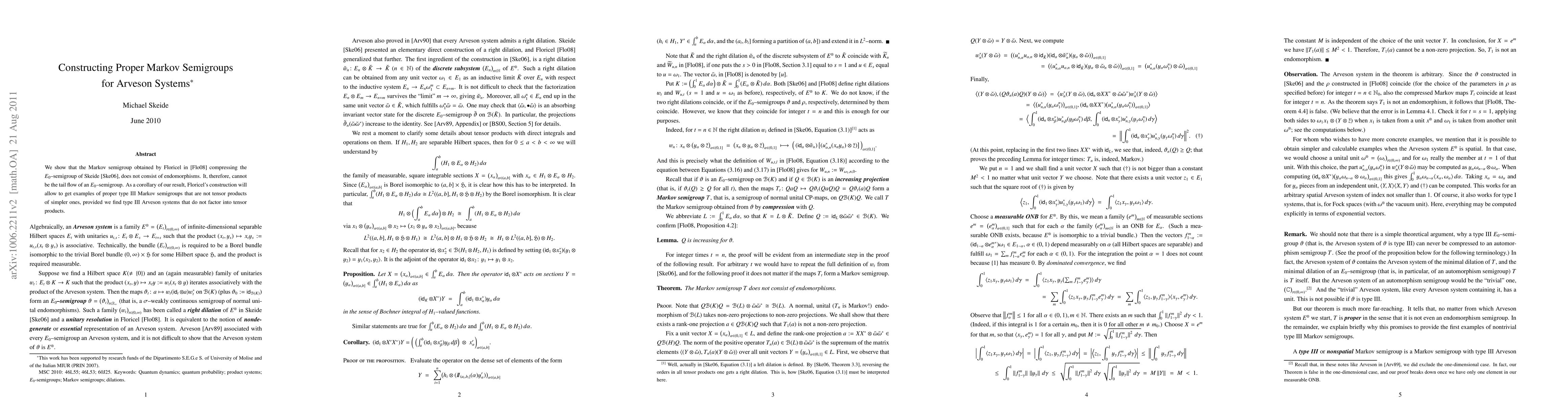 We show that the Markov semigroup obtained by Floricel in [Flo08] compressing the $E_0$-semigroup of Skeide [Ske06], does not consist of endomorphisms. It, therefore, cannot be the tail flow of an $E_0$-semigroup. As a corollary of our result, Floricel's construction will allow to get examples of proper type III Markov semigroups that are not tensor products of simpler ones, provided we find type III Arveson systems that do not factor into tensor products.