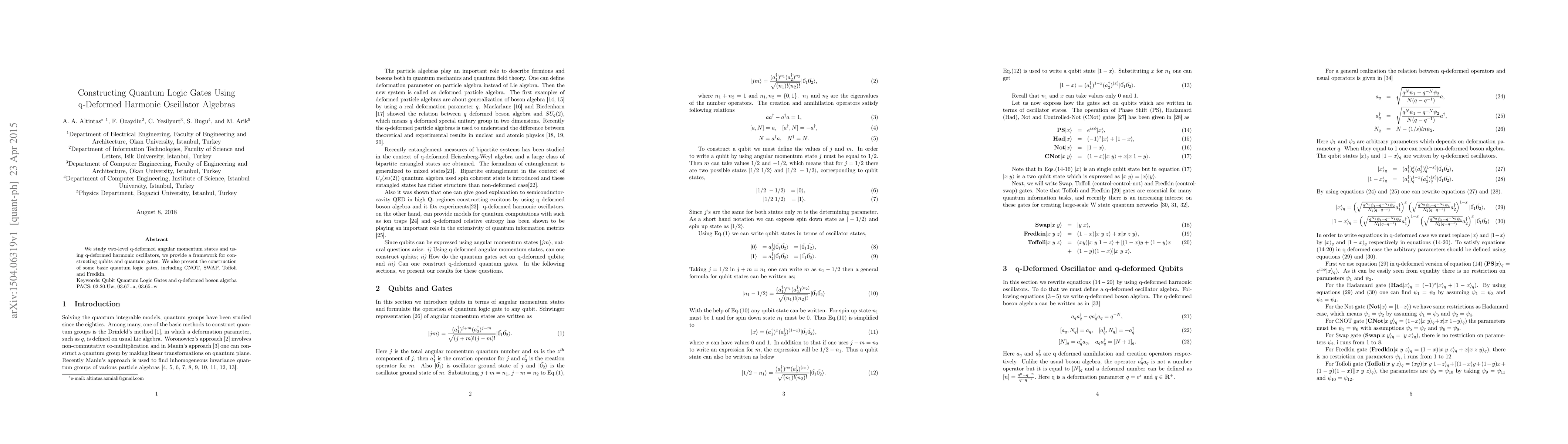 This paper explores the use of q-deformed harmonic oscillators to construct qubits and quantum logic gates, including the CNOT, SWAP, Toffoli, and Fredkin gates, based on two-level q-deformed angular momentum states. The study provides a theoretical framework for quantum computing utilizing q-deformation.