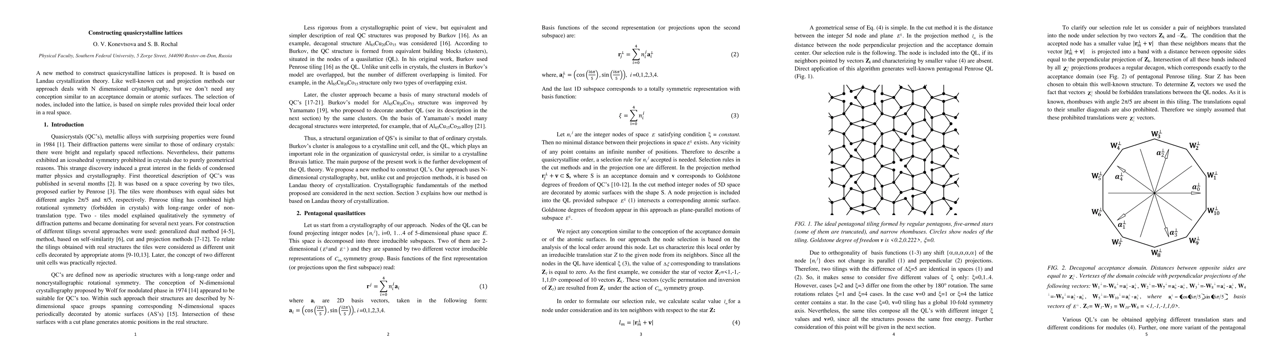Researchers propose a new method to construct quasicrystalline lattices using Landau crystallization theory, eliminating the need for complex atomic surfaces, and selecting nodes based on simple local order rules.