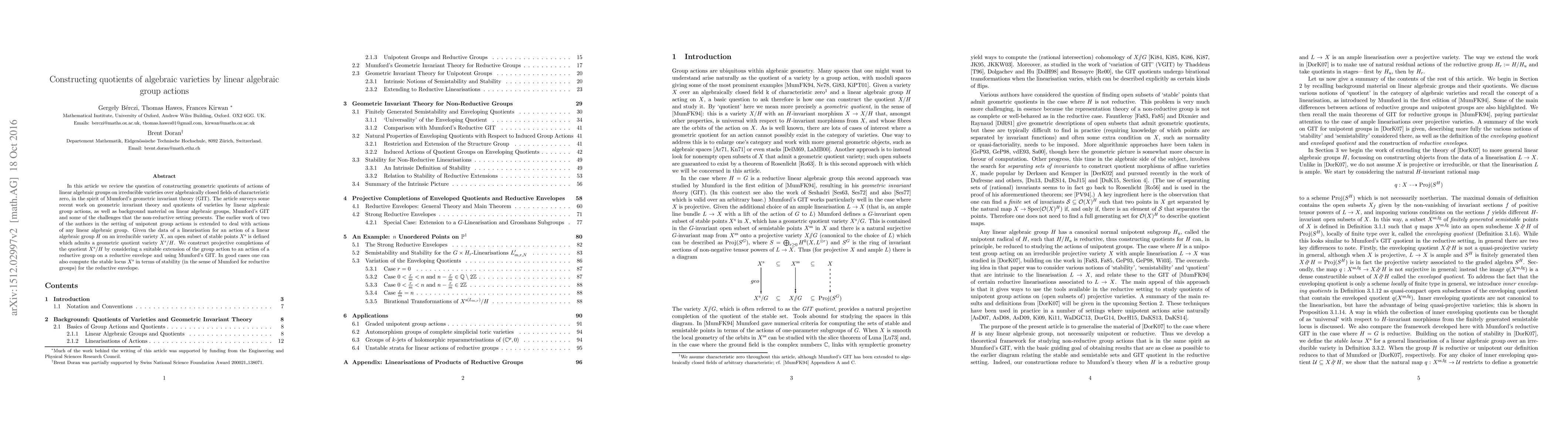 This paper reviews the construction of geometric quotients for actions of linear algebraic groups on varieties, extending previous work to cover all linear algebraic groups. It employs Mumford's geometric invariant theory to define stable points and construct quotient varieties, including projective completions.
