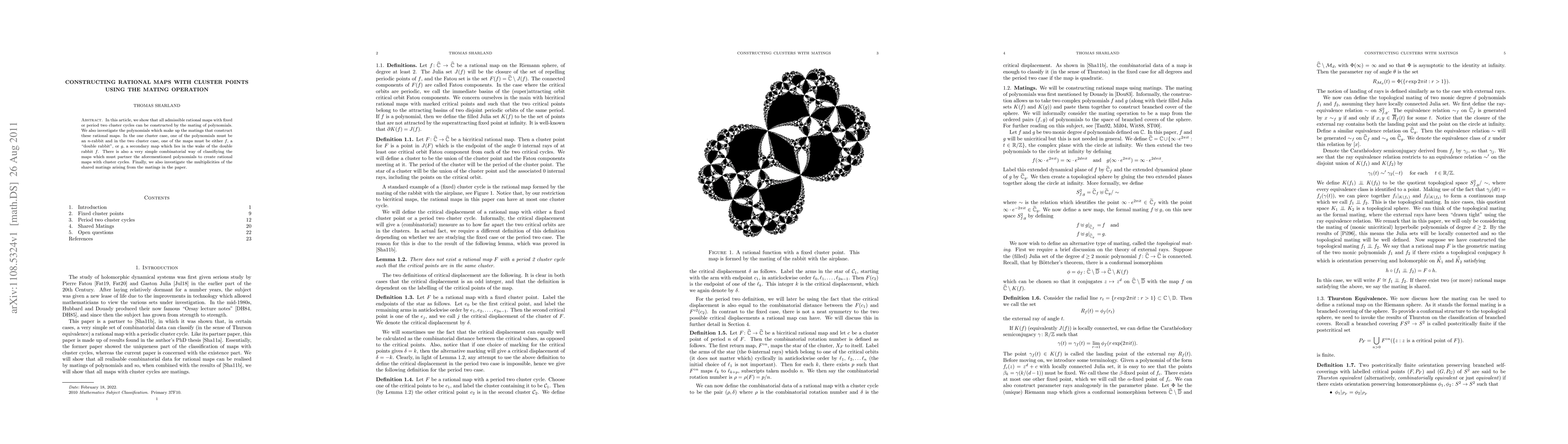 In this article, we show that all admissible rational maps with fixed or period two cluster cycles can be constructed by the mating of polynomials. We also investigate the polynomials which make up the matings that construct these rational maps. In the one cluster case, one of the polynomials must be an $n$-rabbit and in the two cluster case, one of the maps must be either $f$, a "double rabbit", or $g$, a secondary map which lies in the wake of the double rabbit $f$. There is also a very simple combinatorial way of classifiying the maps which must partner the aforementioned polynomials to create rational maps with cluster cycles. Finally, we also investigate the multiplicities of the shared matings arising from the matings in the paper.