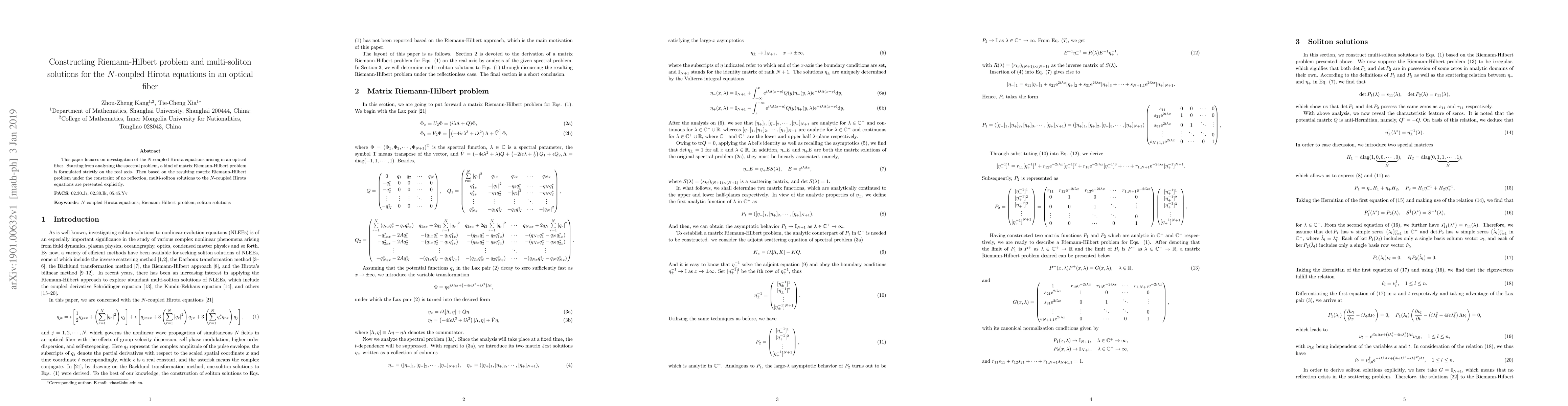 This paper formulates a matrix Riemann-Hilbert problem to analyze the spectral properties of N-coupled Hirota equations in optical fibers, and derives explicit multi-soliton solutions based on this problem.