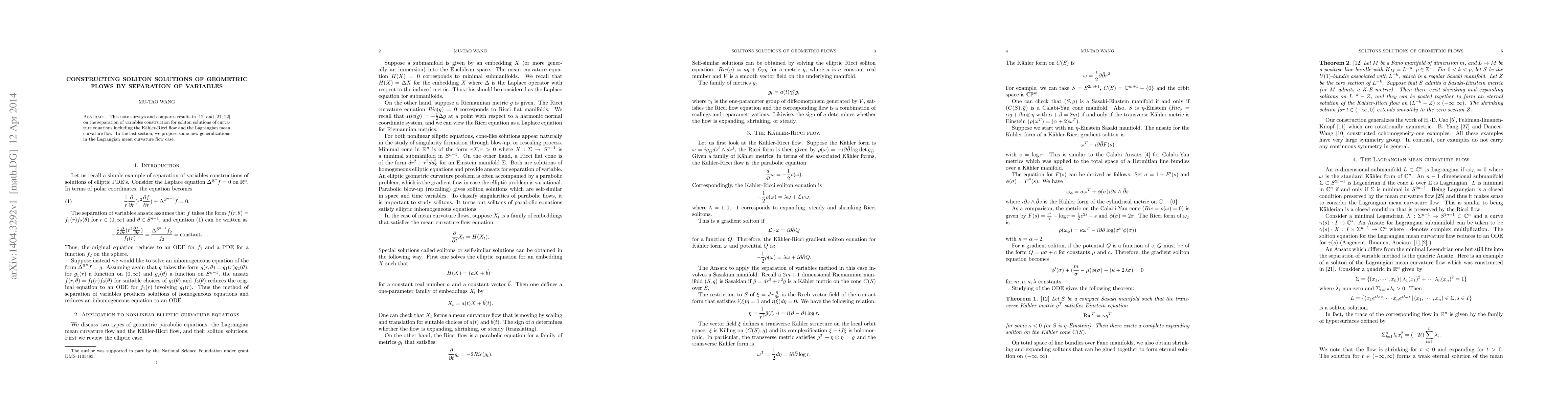 Researchers developed methods to find soliton solutions for certain geometric flows, including the K"ahler-Ricci flow and Lagrangian mean curvature flow, using a technique called separation of variables.