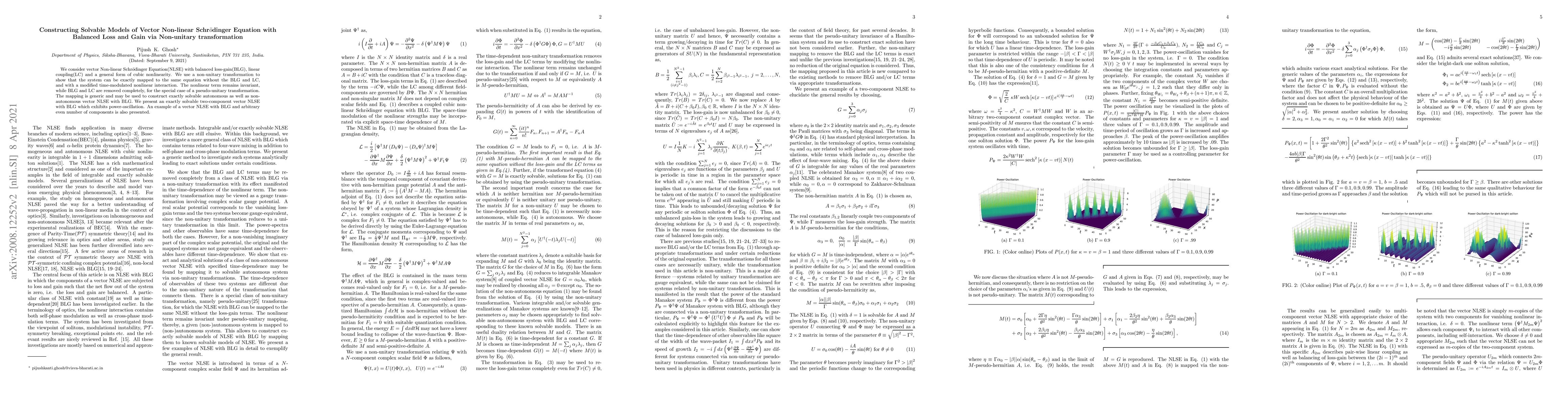 This paper constructs solvable models of vector non-linear Schrödinger equations with balanced loss and gain via a non-unitary transformation. The authors demonstrate that the system can be mapped to an equation without loss and gain, using a pseudo-unitary transformation, which allows for the construction of exactly solvable autonomous and non-autonomous vector NLSE models.