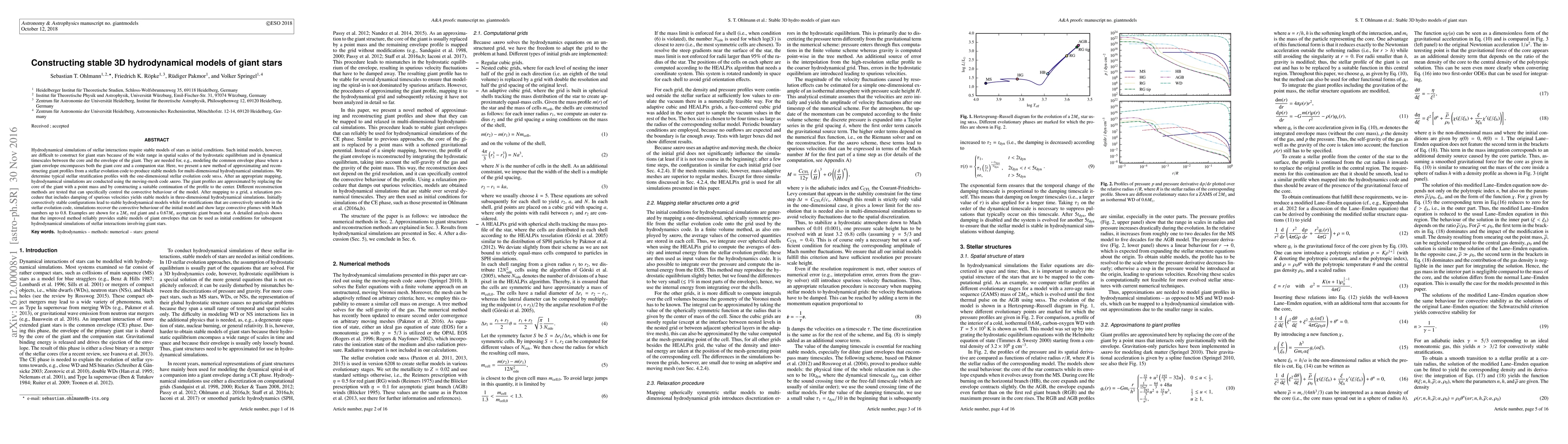 This paper introduces a new method for constructing stable 3D hydrodynamical models of giant stars, addressing the challenge of wide spatial scales and differing timescales in stellar evolution. The method uses MESA for stellar stratification profiles and AREPO for hydrodynamical simulations, ensuring stable initial conditions for modeling stellar interactions.