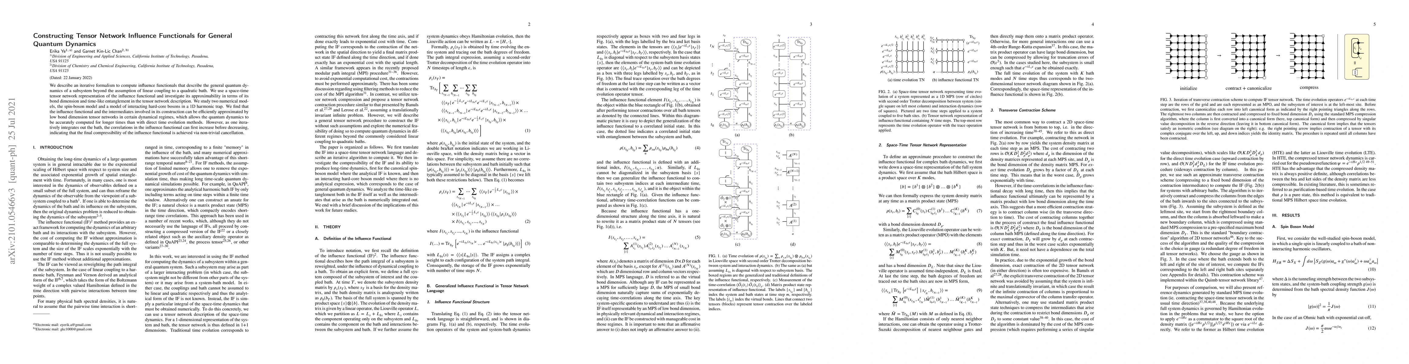 We describe an iterative formalism to compute influence functionals that describe the general quantum dynamics of a subsystem beyond the assumption of linear coupling to a quadratic bath. We use a space-time tensor network representation of the influence functional and investigate its approximability in terms of the bond dimensions and time-like entanglement in the tensor network description. We study two numerical models, the spin-boson model and a model of interacting hard-core bosons in a 1D harmonic trap. We find that the influence functional and the intermediates involved in its construction can be efficiently approximated by low bond dimension tensor networks in certain dynamical regimes, which allows the quantum dynamics to be accurately computed for longer times than with direct time evolution methods. However, as one iteratively integrates out the bath, the correlations in the influence functional can first increase before decreasing, indicating that the final compressibility of the influence functional is achieved via non-trivial cancellation.