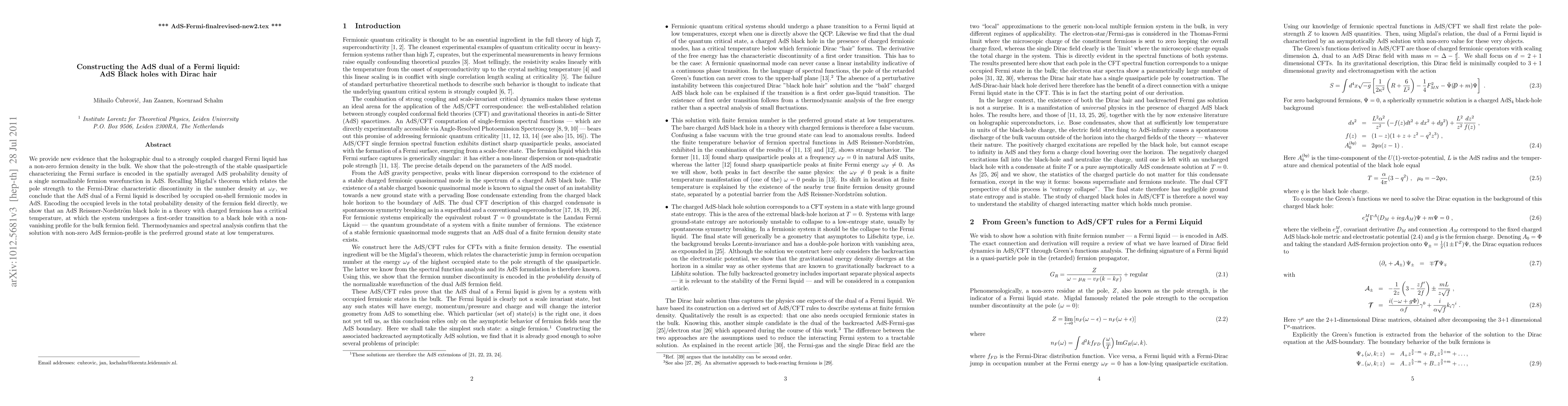 We provide new evidence that the holographic dual to a strongly coupled charged Fermi Liquid has a non-zero fermion density in the bulk. We show that the pole-strength of the stable quasiparticle characterizing the Fermi surface is encoded in the spatially averaged AdS probability density of a single normalizable fermion wavefunction in AdS. Recalling Migdal's theorem which relates the pole strength to the Fermi-Dirac characteristic discontinuity in the number density at $\ome_F$, we conclude that the AdS dual of a Fermi liquid is described by occupied on-shell fermionic modes in AdS. Encoding the occupied levels in the total probability density of the fermion field directly, we show that an AdS Reissner-Nordstr\"{o}m black hole in a theory with charged fermions has a critical temperature, at which the system undergoes a first-order transition to a black hole with a non-vanishing profile for the bulk fermion field. Thermodynamics and spectral analysis confirm that the solution with non-zero AdS fermion-profile is the preferred ground state at low temperatures.