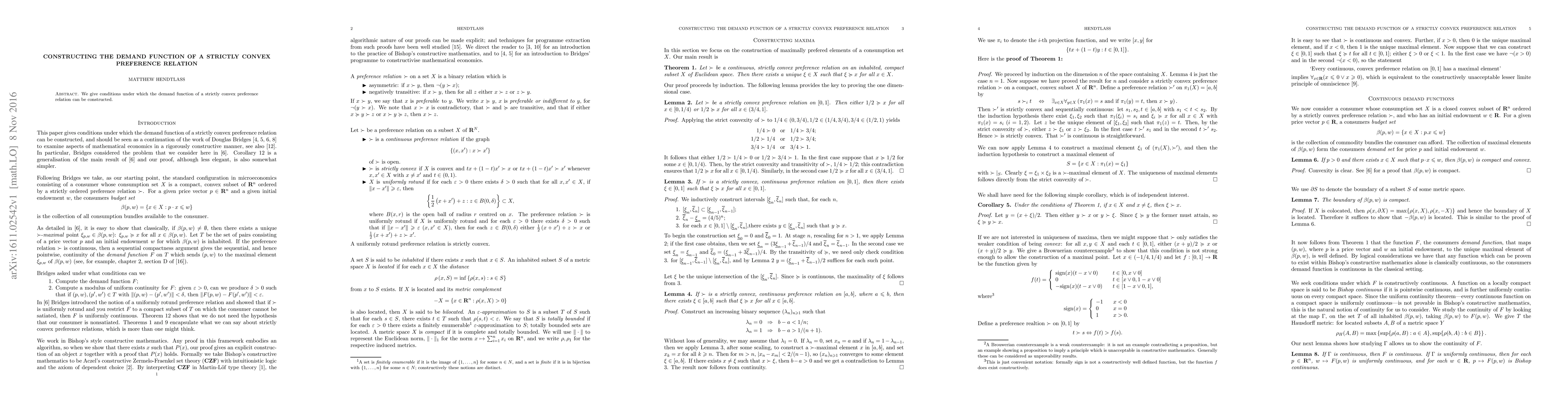 We give conditions under which the demand function of a strictly convex preference relation can be constructed.