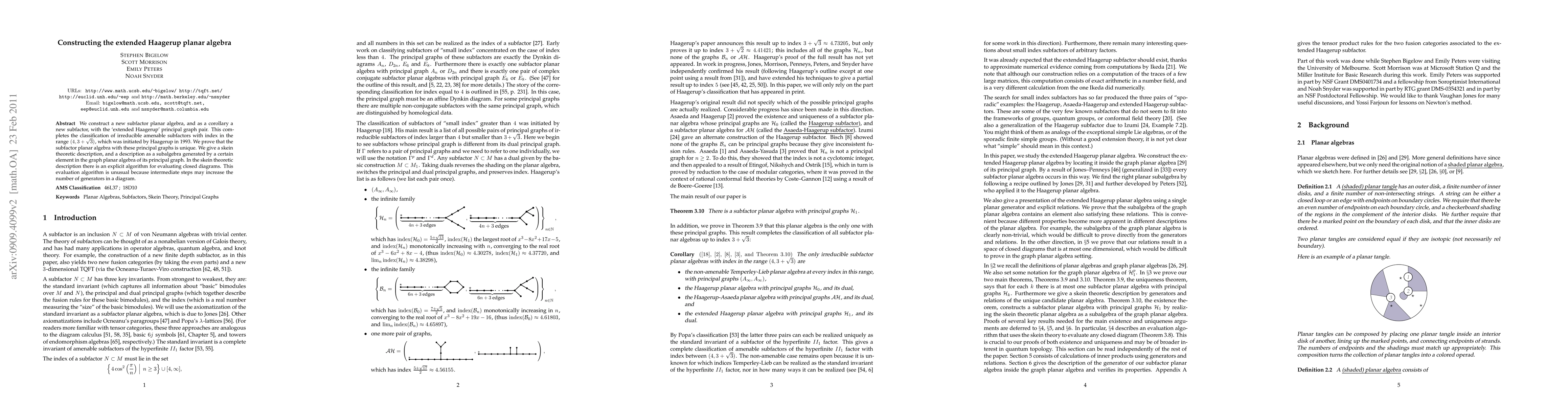 We construct a new subfactor planar algebra, and as a corollary a new subfactor, with the `extended Haagerup' principal graph pair. This completes the classification of irreducible amenable subfactors with index in the range $(4,3+\sqrt{3})$, which was initiated by Haagerup in 1993. We prove that the subfactor planar algebra with these principal graphs is unique. We give a skein theoretic description, and a description as a subalgebra generated by a certain element in the graph planar algebra of its principal graph. In the skein theoretic description there is an explicit algorithm for evaluating closed diagrams. This evaluation algorithm is unusual because intermediate steps may increase the number of generators in a diagram.