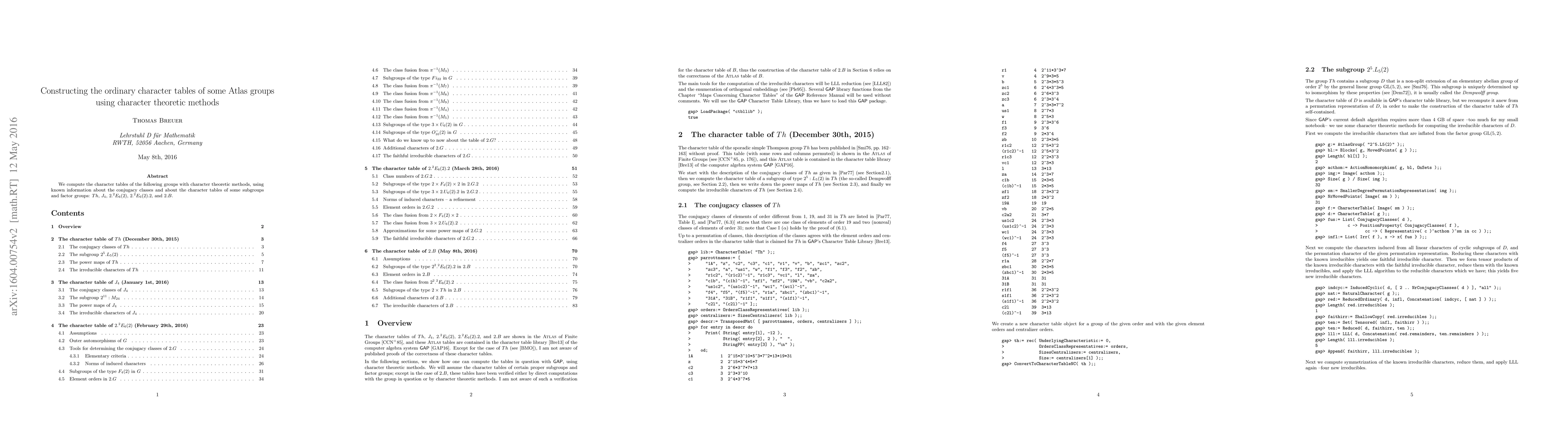 Summary: This paper computes the ordinary character tables for $Th$, $J_4$, $2.{}^2E_6(2)$, $2.{}^2E_6(2).2$, and $2.B$ using character theoretic methods, leveraging known data about their conjugacy classes and related subgroup and factor group character tables.