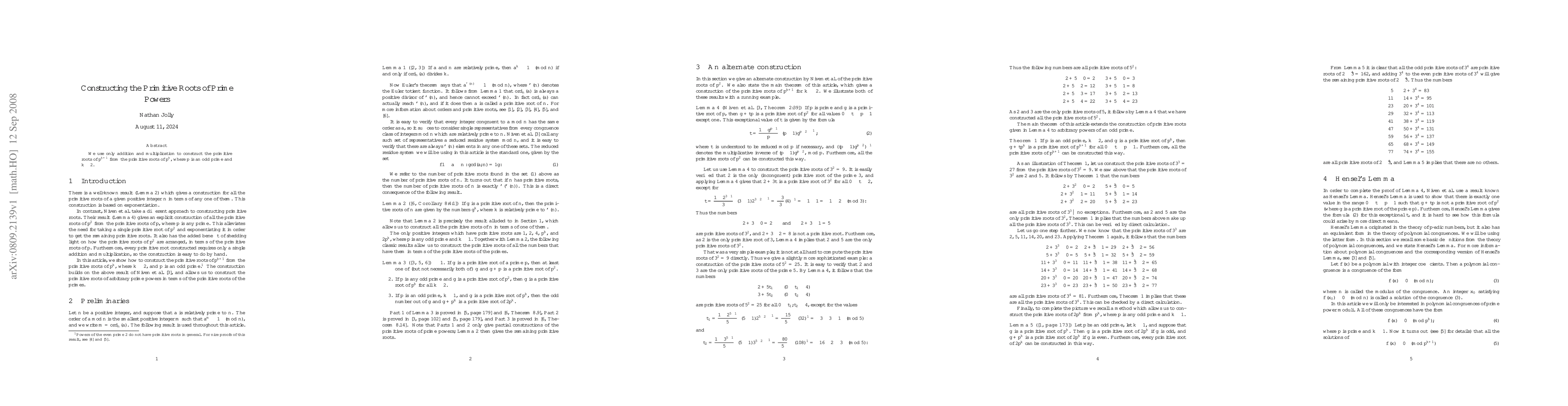 Summary: This paper proposes a method using only addition and multiplication to derive primitive roots of prime powers $p^{k+1}$ from those of $p^k$, for odd primes $p$ and $k \geq 2$. The technique provides an elegant construction without relying on advanced algebraic operations.