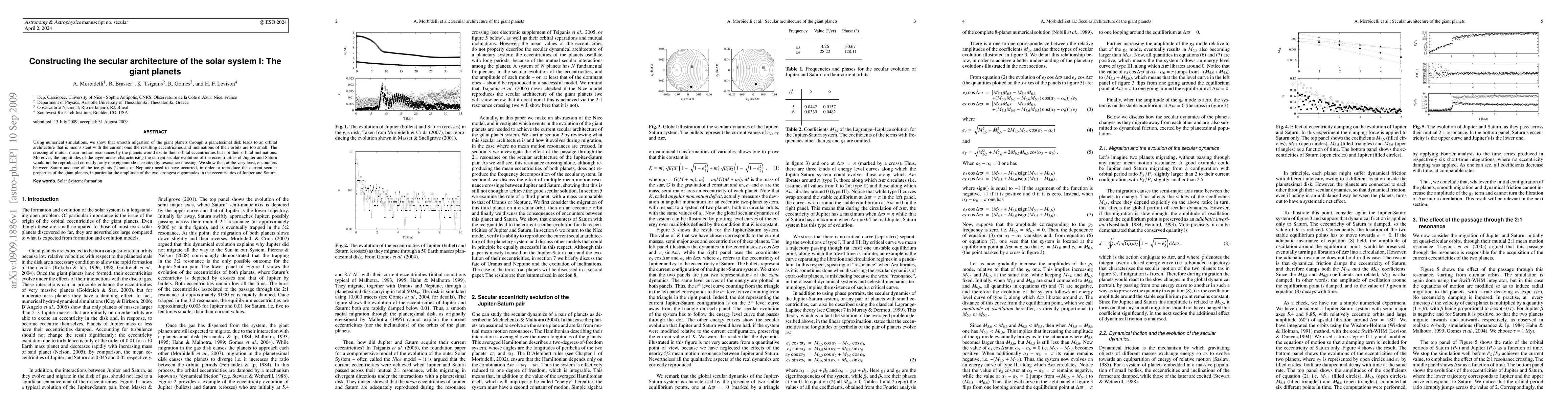 This research demonstrates that smooth migration of the giant planets through a planetesimal disk cannot reproduce the current orbital eccentricities and inclinations, suggesting that encounters between Saturn and one of the ice giants are necessary to match the observed secular properties.