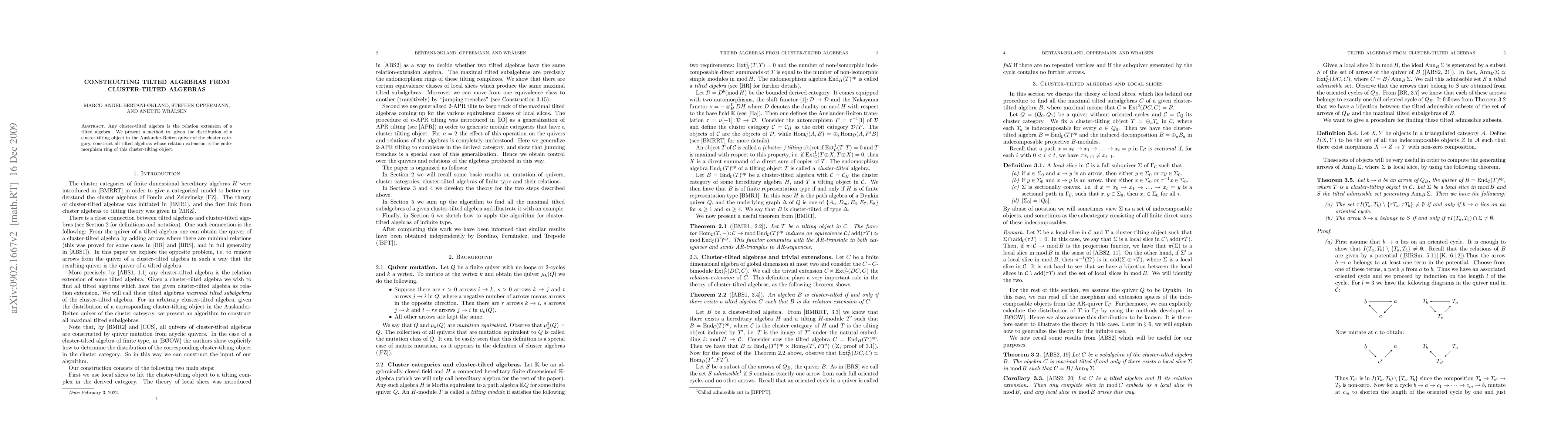 Summary: This paper proposes a method to construct tilted algebras from cluster-tilted algebras by using the distribution of cluster-tilting objects in the Auslander-Reiten quiver of the cluster category. It identifies all tilted algebras whose relation extension corresponds to the endomorphism ring of a given cluster-tilting object.
