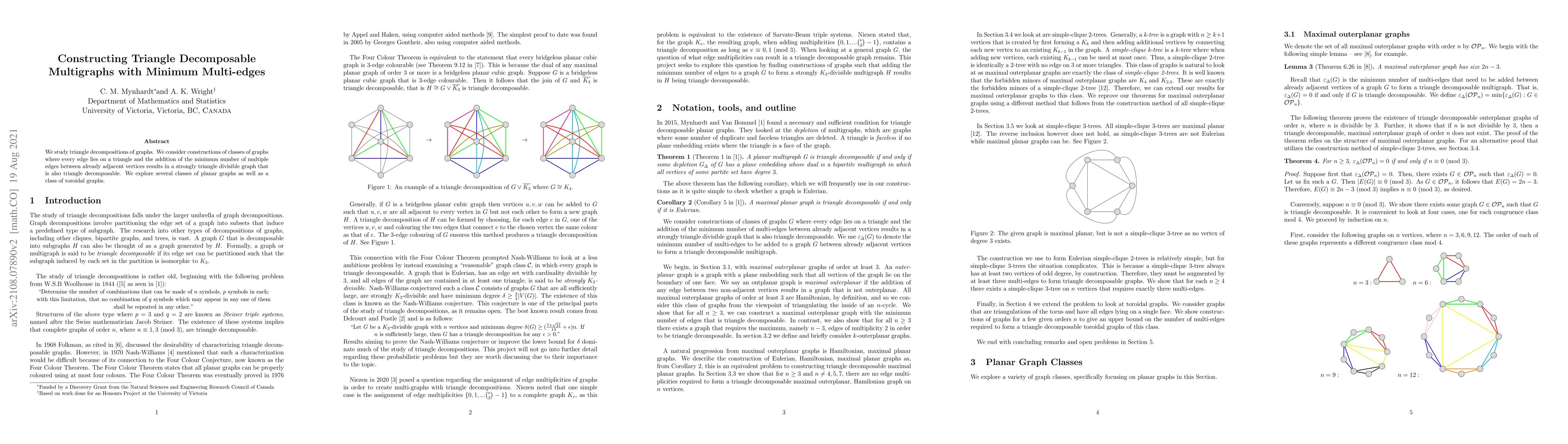 This paper investigates the construction of triangle decomposable multigraphs where every edge belongs to a triangle, and the addition of the minimum number of multiple edges forms a strongly triangle divisible graph. It explores various planar and toroidal graph classes.