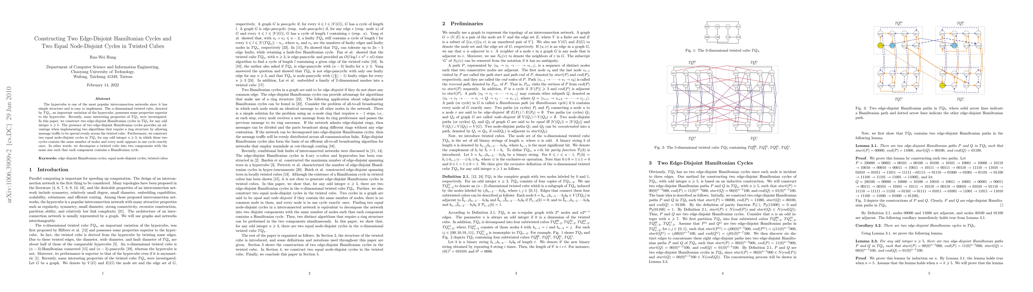 This paper constructs two edge-disjoint Hamiltonian cycles in $TQ_n$ for any odd $n\geqslant 5$ and two equal node-disjoint cycles in $TQ_n$ for any odd $n\geqslant 3$, enhancing the twisted cube's algorithmic implementation and network efficiency.