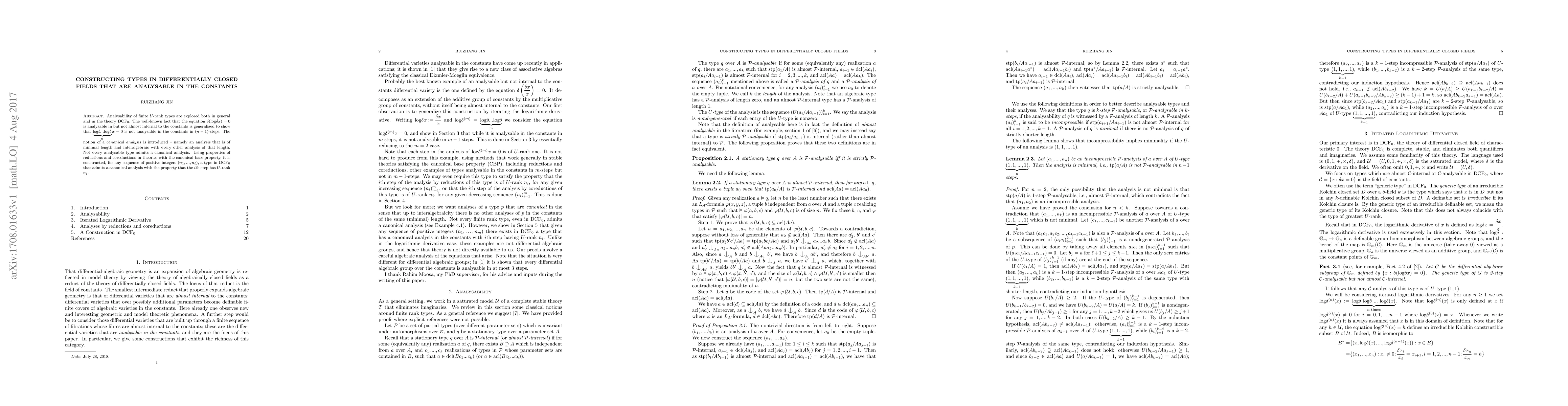 This paper introduces a new concept of canonical analysis in differentially closed fields, showing that certain types cannot be analyzed in the constants within a specific number of steps. It provides a method to construct types with variable step lengths for any sequence of positive integers.