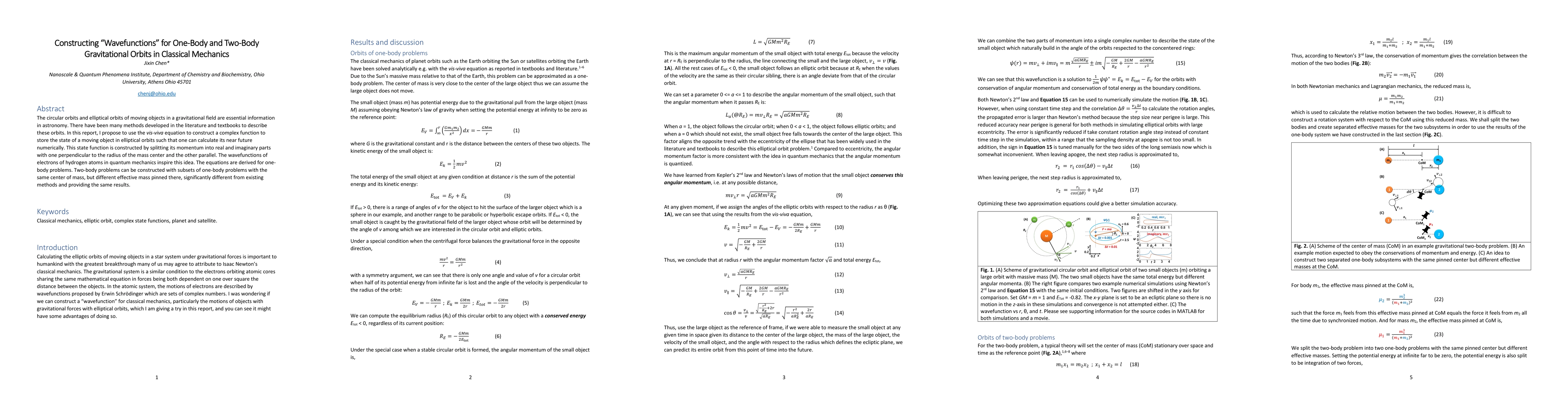 This paper proposes a novel method to construct complex wavefunctions using the vis-viva equation to describe one-body and two-body gravitational orbits, inspired by quantum mechanics' electron wavefunctions. It derives equations for elliptical orbits and extends the approach to two-body problems, offering a significant alternative to existing methods.