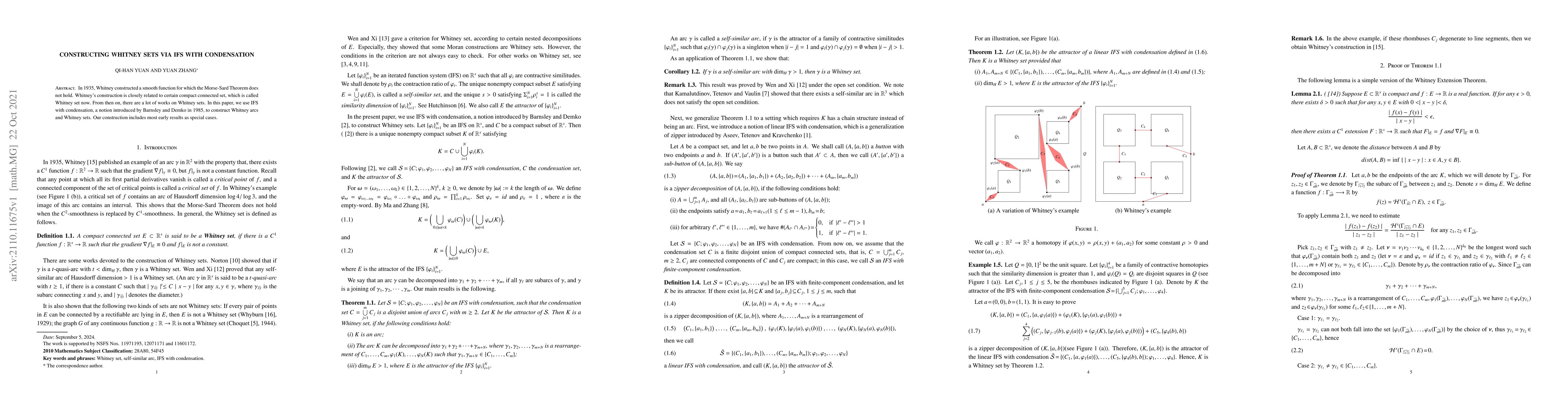 In 1935, Whitney constructed a smooth function for which the Morse-Sard Theorem does not hold. Whitney's construction is closely related to certain compact connected set, which is called Whitney set now. From then on, there are a lot of works on Whitney sets. In this paper, we use IFS with condensation, a notion introduced by Barnsley and Demko in 1985, to construct Whitney arcs and Whitney sets. Our construction includes most early results as special cases.