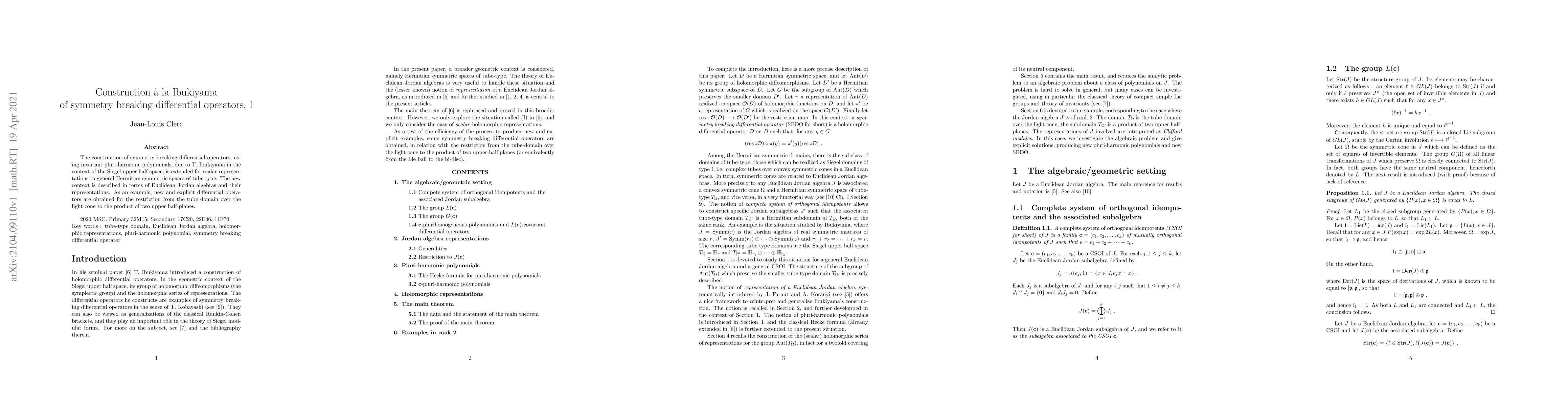The construction of symmetry breaking differential operators, using invariant pluri-harmonic polynomials, due to T. Ibukiyama in the context of the Siegel upper half space, is extended for scalar representations to general Hermitian symmetric spaces of tube-type. The new context is described in terms of Euclidean Jordan algebras and their representations. As an example, new and explicit differential operators are obtained for the restriction from the tube domain over the light cone to the product of two upper half-planes.