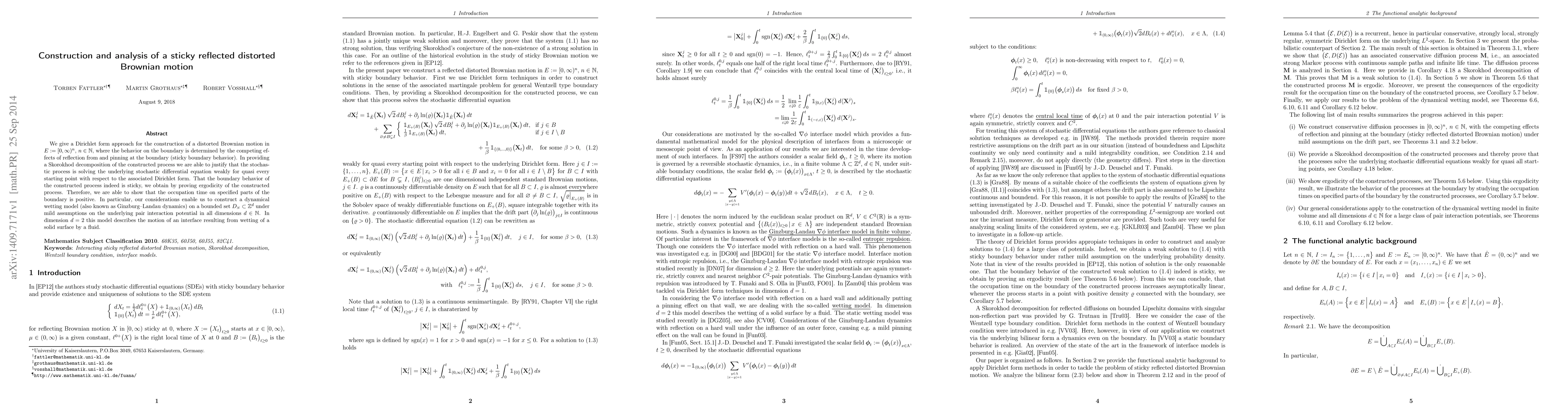 We give a Dirichlet form approach for the construction of a distorted Brownian motion in $E:=[0,\infty)^n$, $n\in\mathbb{N}$, where the behavior on the boundary is determined by the competing effects of reflection from and pinning at the boundary (sticky boundary behavior). In providing a Skorokhod decomposition of the constructed process we are able to justify that the stochastic process is solving the underlying stochastic differential equation weakly for quasi every starting point with respect to the associated Dirichlet form. That the boundary behavior of the constructed process indeed is sticky, we obtain by proving ergodicity of the constructed process. Therefore, we are able to show that the occupation time on specified parts of the boundary is positive. In particular, our considerations enable us to construct a dynamical wetting model (also known as Ginzburg--Landau dynamics) on a bounded set $D_{\scriptscriptstyle{N}}\subset \mathbb{Z}^d$ under mild assumptions on the underlying pair interaction potential in all dimensions $d\in\mathbb{N}$. In dimension $d=2$ this model describes the motion of an interface resulting from wetting of a solid surface by a fluid.