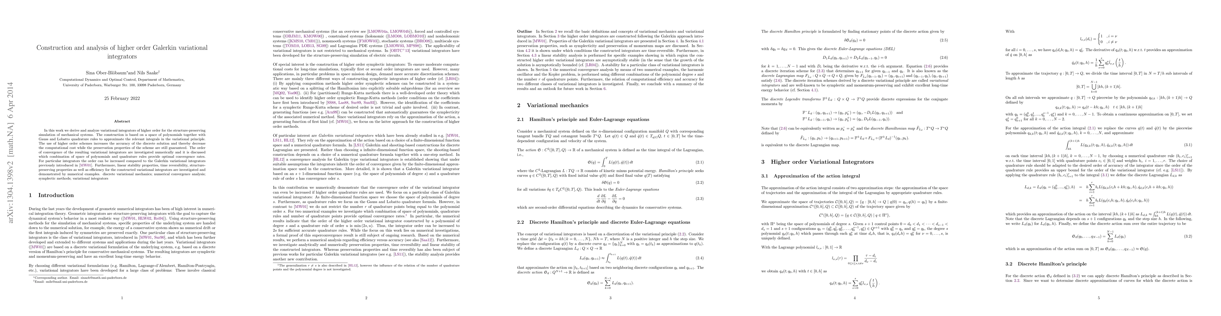 This paper develops higher-order variational integrators for simulating mechanical systems, employing polynomial spaces and quadrature rules to enhance accuracy and efficiency. The study investigates optimal combinations for convergence rates and demonstrates the linear stability, time reversibility, and structure-preserving properties of the proposed methods through numerical examples.