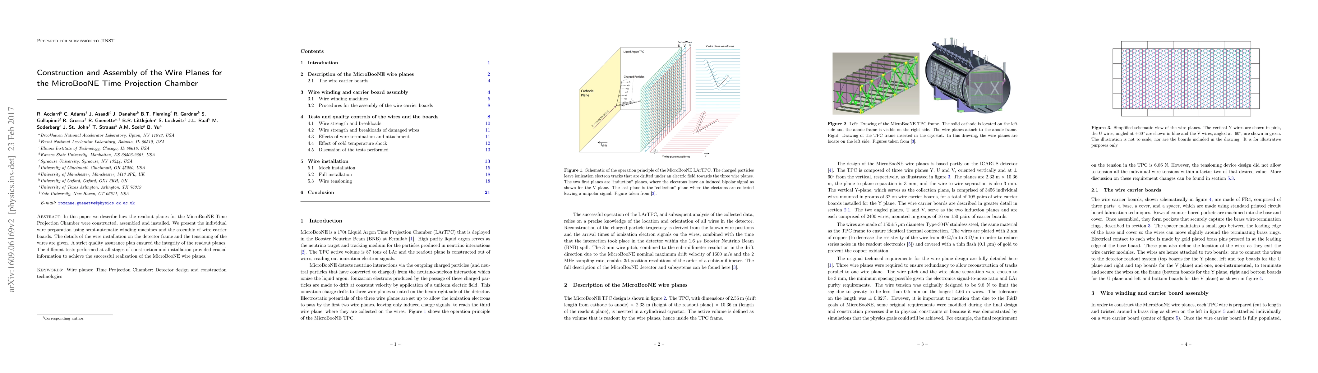 Researchers describe the construction and assembly of the MicroBooNE Time Projection Chamber's readout planes using semi-automatic winding machines and quality assurance measures to ensure their integrity.