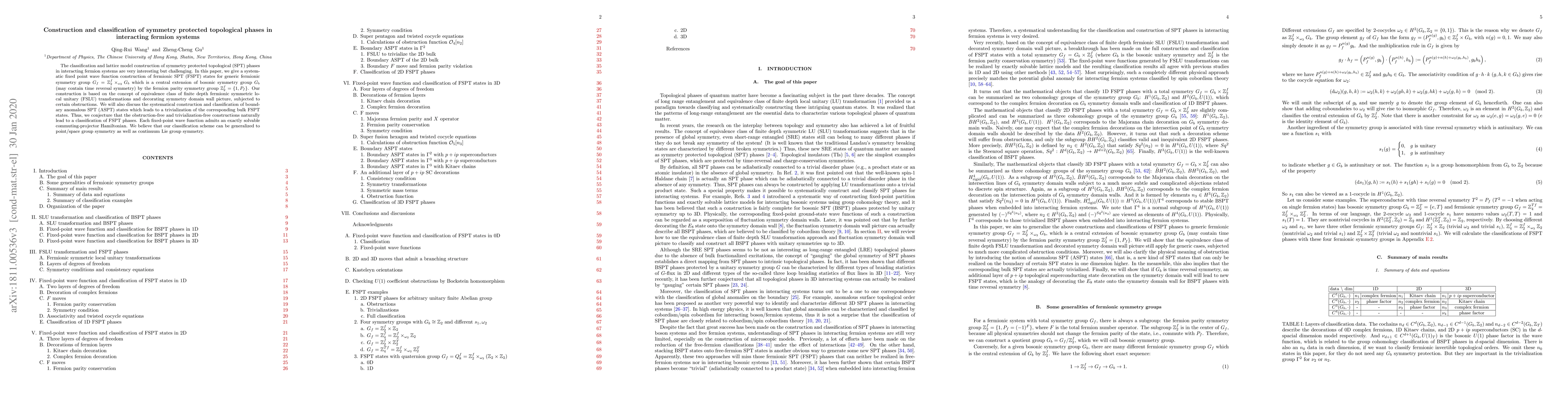 This paper systematically constructs and classifies symmetry protected topological (SPT) phases in interacting fermion systems, employing fixed-point wave functions based on finite depth transformations and symmetry domain walls. The authors propose a classification scheme for these phases, suggesting its potential generalization to various symmetry groups.