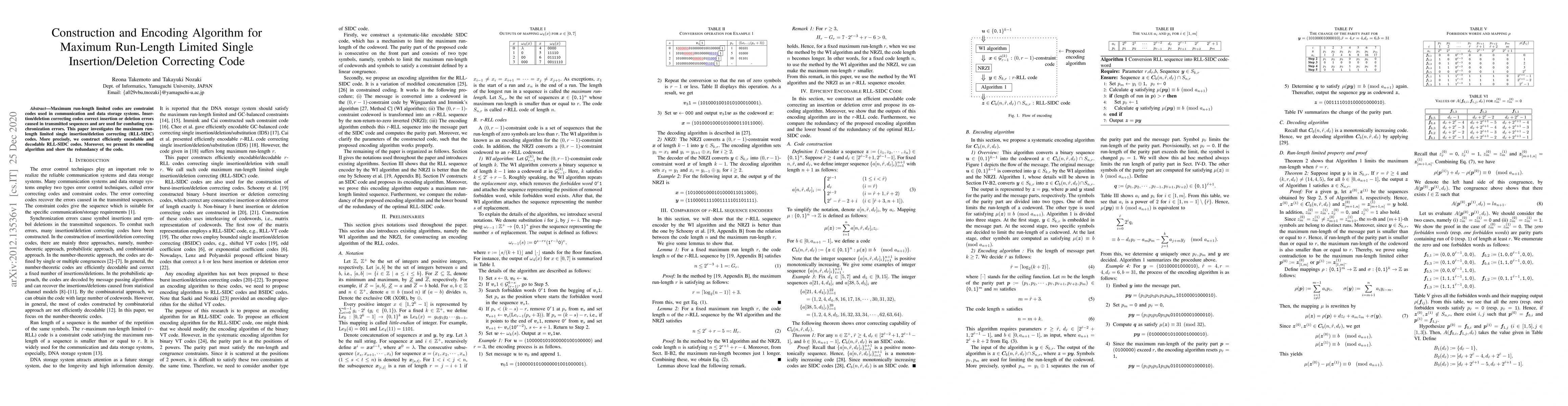 This paper constructs efficient maximum run-length limited single insertion/deletion correcting codes (RLL-SIDC) and presents an encoding algorithm for these codes, demonstrating their effectiveness in correcting synchronization errors in communication systems.