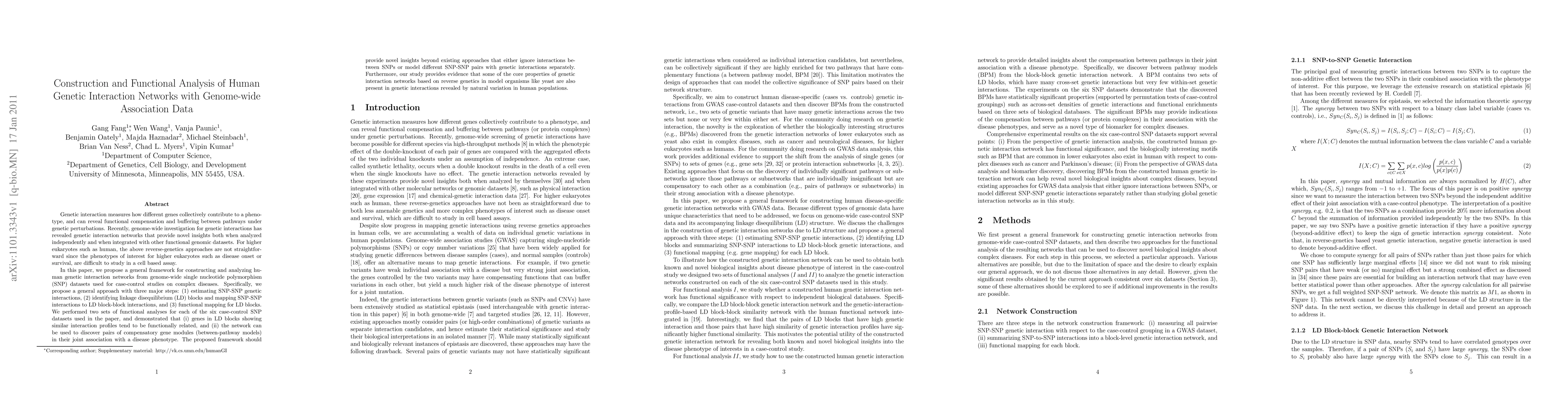 This paper proposes a framework for constructing and analyzing human genetic interaction networks using genome-wide SNP data from case-control studies. It demonstrates that these networks, supported by independent biological evidence, can reveal compensatory gene modules associated with complex diseases, offering insights beyond traditional single-SNP approaches.