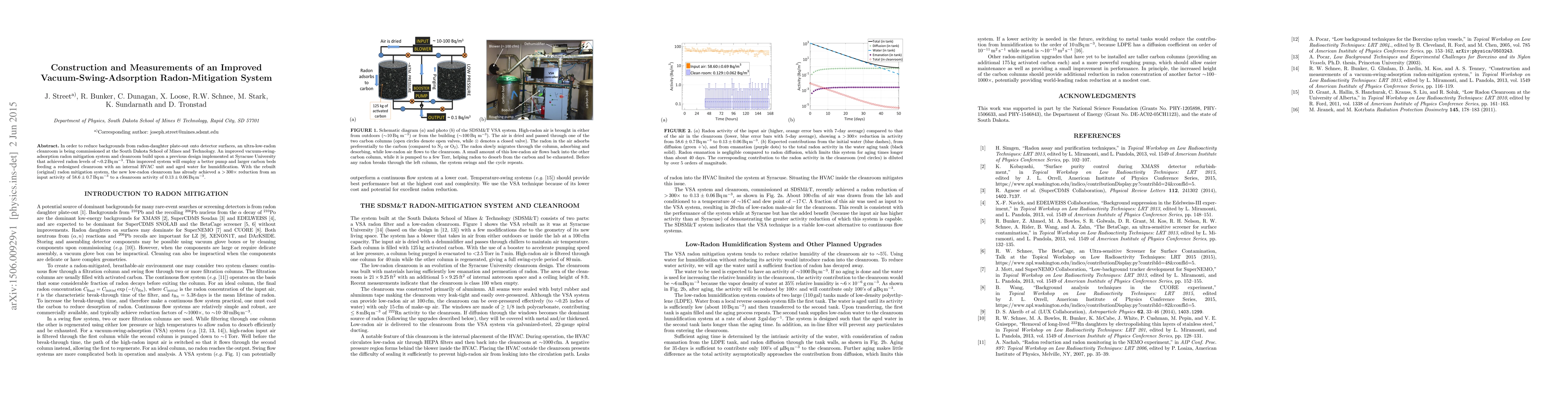 This paper details the construction and initial measurements of an advanced vacuum-swing-adsorption radon mitigation system, achieving a significant reduction in radon levels from $58.6\pm0.7$ Bq m$^{-3}$ to $0.13\pm0.06$ Bq m$^{-3}$ in a new ultra-low-radon cleanroom at the South Dakota School of Mines and Technology.