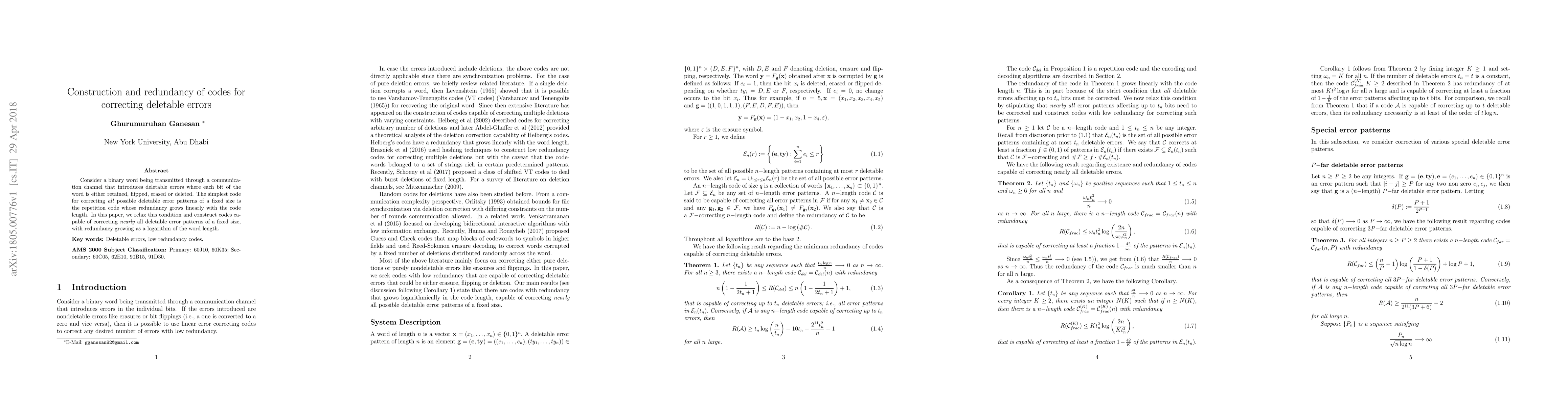 Researchers develop new codes that can correct nearly all possible deletable errors of a fixed size with redundancy growing as a logarithm of the word length, improving upon existing repetition codes.