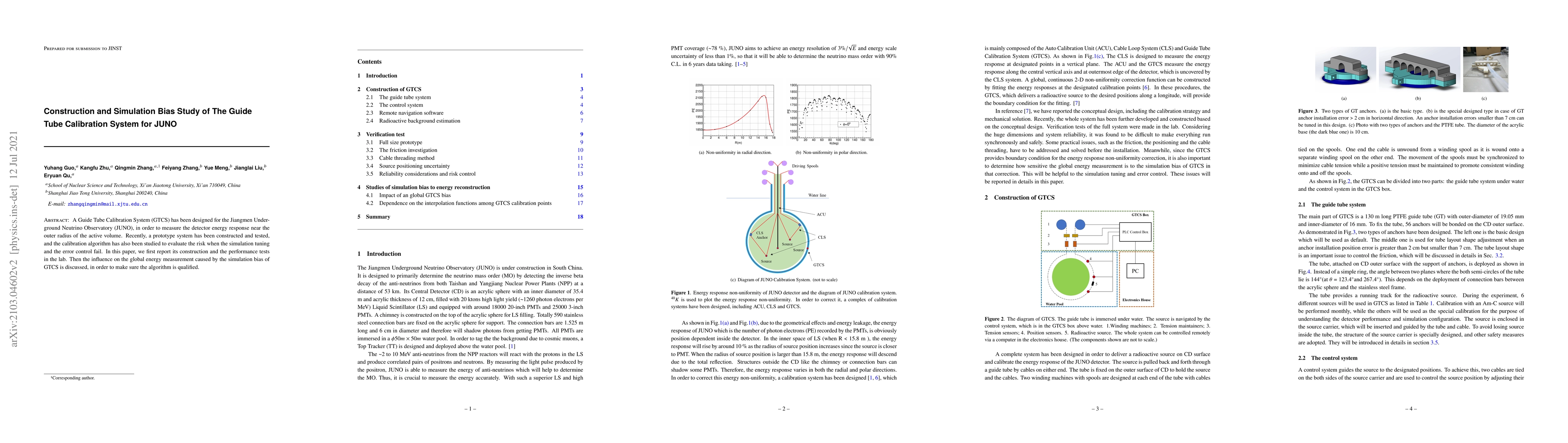 This paper details the construction and lab performance tests of the Guide Tube Calibration System (GTCS) for the JUNO observatory, and examines the impact of simulation bias on global energy measurements to ensure the calibration algorithm's reliability.