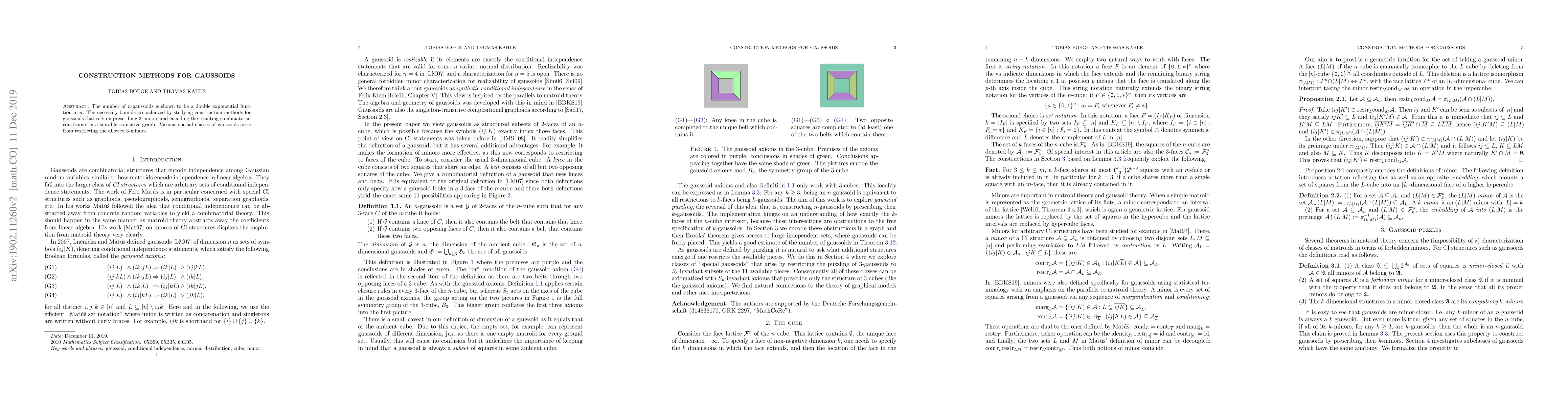 The number of $n$-gaussoids is shown to be a double exponential function in $n$. The necessary bounds are achieved by studying construction methods for gaussoids that rely on prescribing $3$-minors and encoding the resulting combinatorial constraints in a suitable transitive graph. Various special classes of gaussoids arise from restricting the allowed $3$-minors.