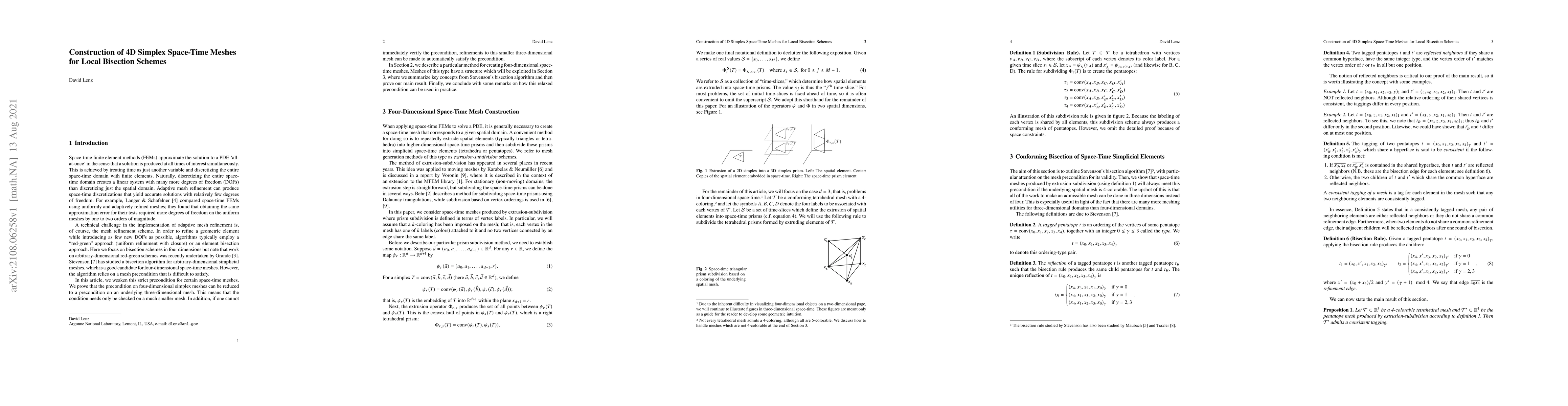 Researchers developed a method to create 4D simplex space-time meshes that can always satisfy bisection preconditions for local mesh refinement in adaptive finite element methods, even for tetrahedral meshes that are not 4-colorable.