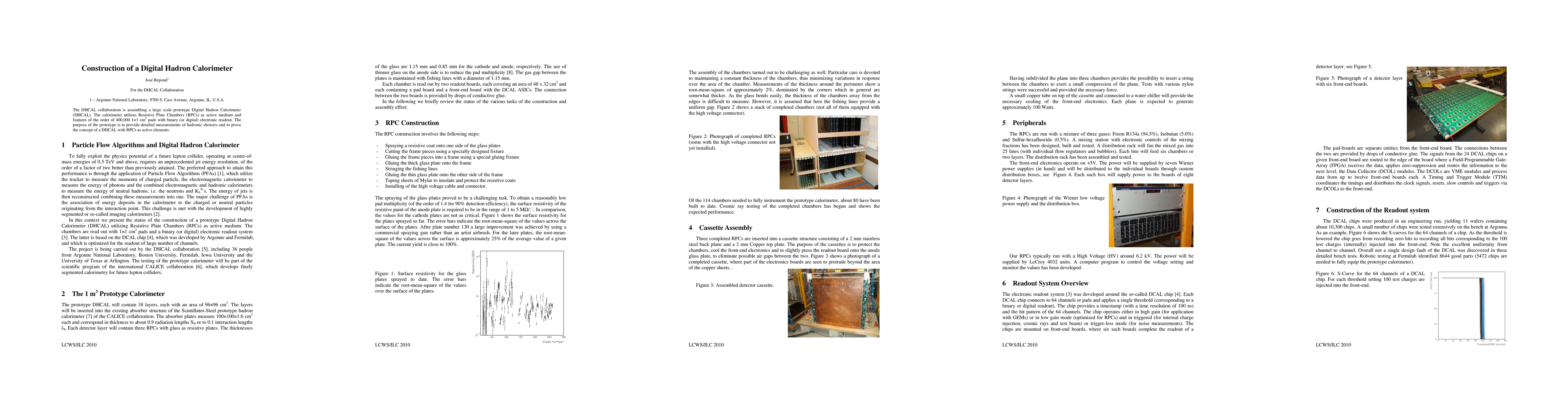 The DHCAL collaboration is constructing a prototype Digital Hadron Calorimeter (DHCAL) using Resistive Plate Chambers with 400,000 pads, aiming to measure hadronic showers and validate the DHCAL concept with RPCs.