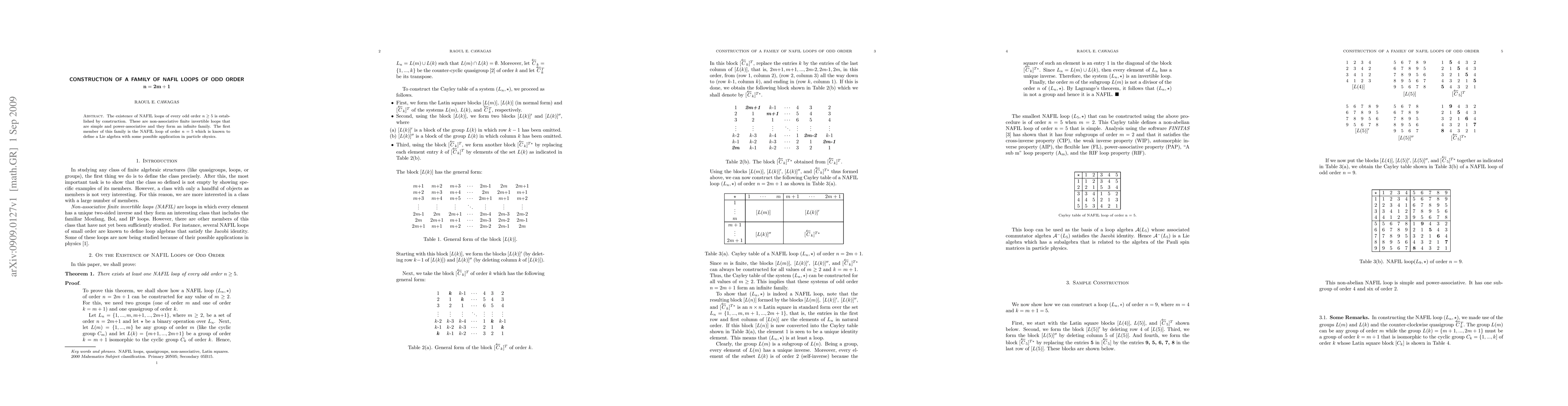 The existence of NAFIL loops of every odd order n => 5 is established by construction. These are non-associative finite invertible loops that are simple and power-associative and they form an infinite family. The first member of this family is the NAFIL loop of order n = 5 which is known to define a Lie algebra with some possible applications in particle physics.
