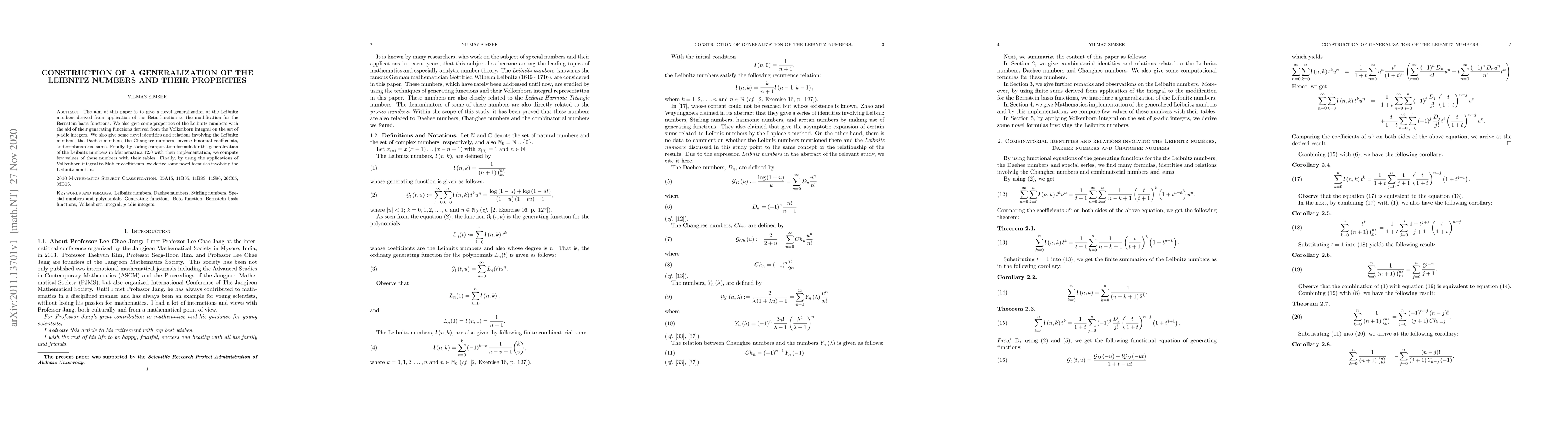 This paper presents a novel generalization of Leibnitz numbers using the Beta function and Bernstein basis functions, and explores their properties via generating functions and Volkenborn integral. It also introduces new identities linking Leibnitz, Daehee, and Changhee numbers, and computes values using Mathematica, with applications to Mahler coefficients.