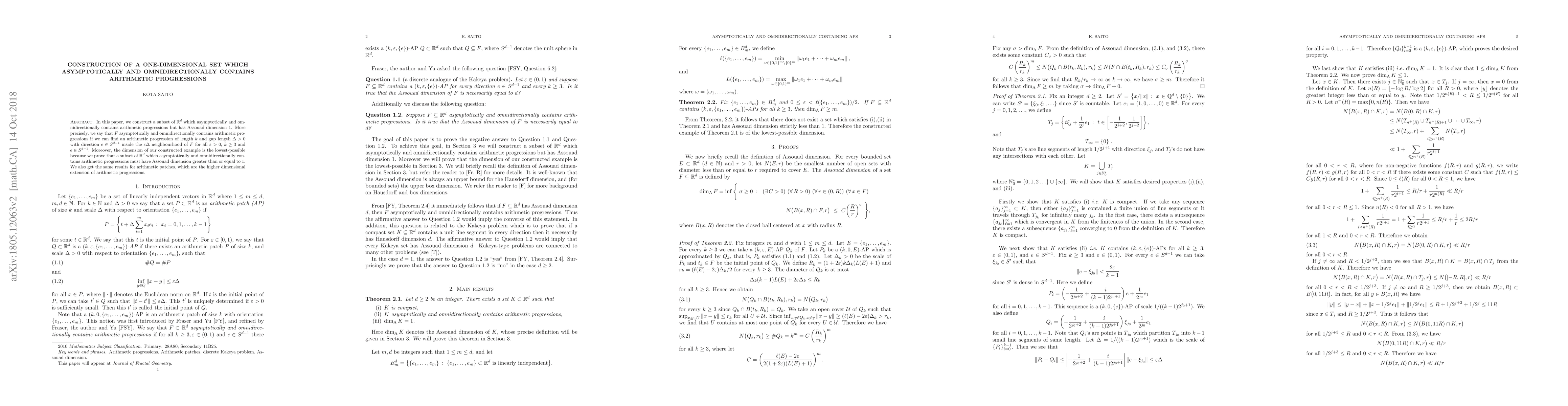 This paper constructs a one-dimensional subset of $\mathbb{R}^d$ that asymptotically and omnidirectionally contains arithmetic progressions, proving it has the lowest possible Assouad dimension of 1. The authors also extend their findings to arithmetic patches.