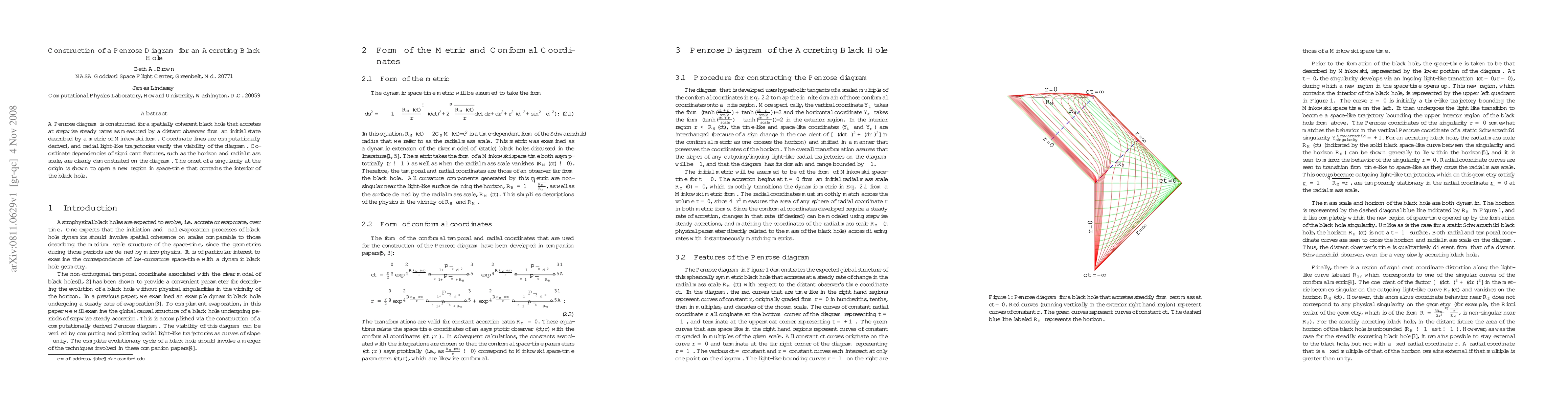 This paper presents a Penrose diagram for a black hole accreting matter at steady rates, derived via computational coordinate lines. The diagram illustrates significant features like the horizon and singularity, revealing a new space-time region encompassing the black hole's interior.