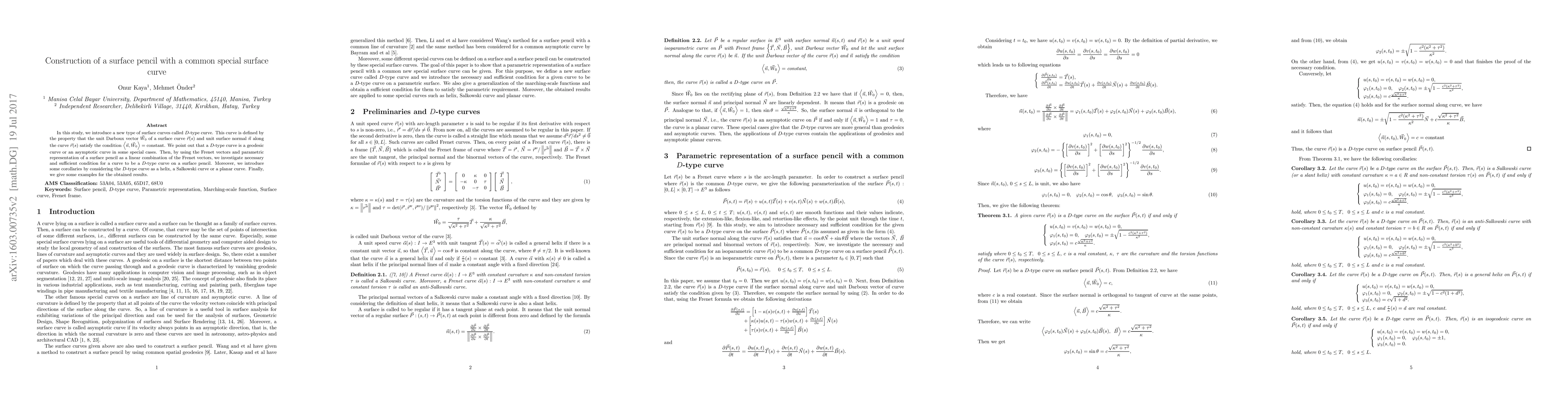 space curve r(s) and unit surface normal n along the curve r(s) satisfy the